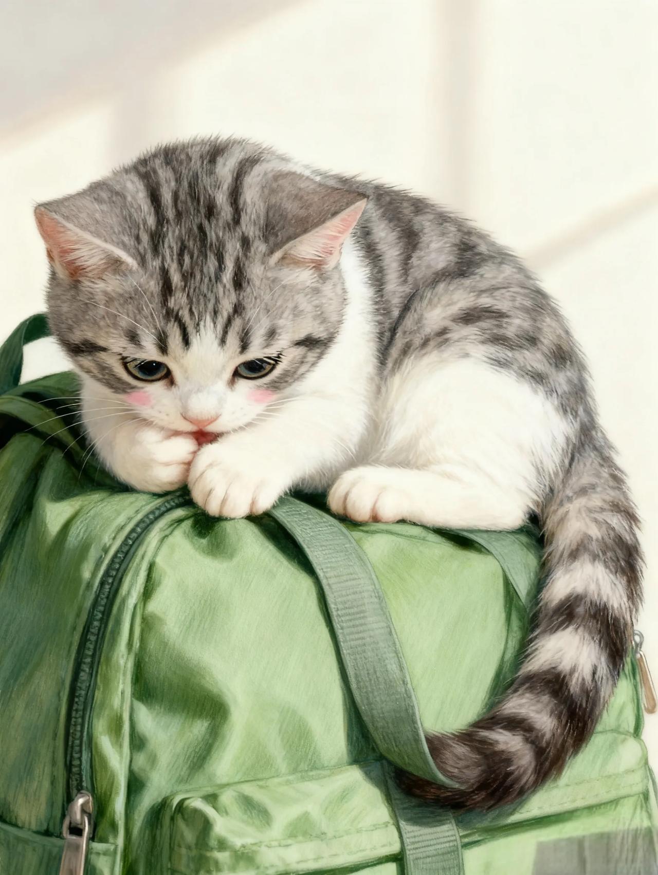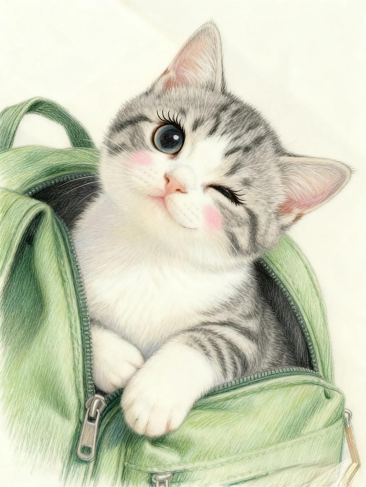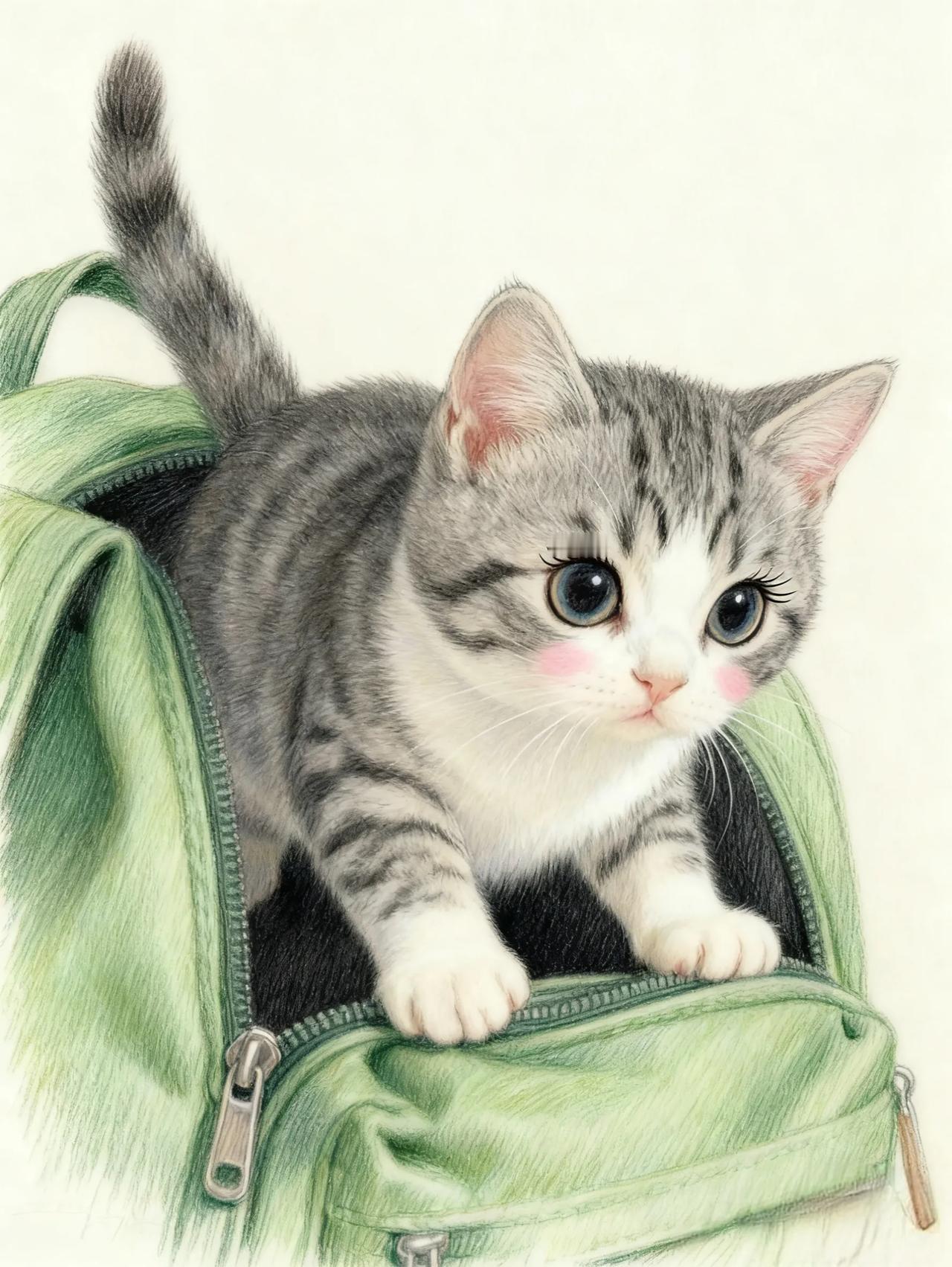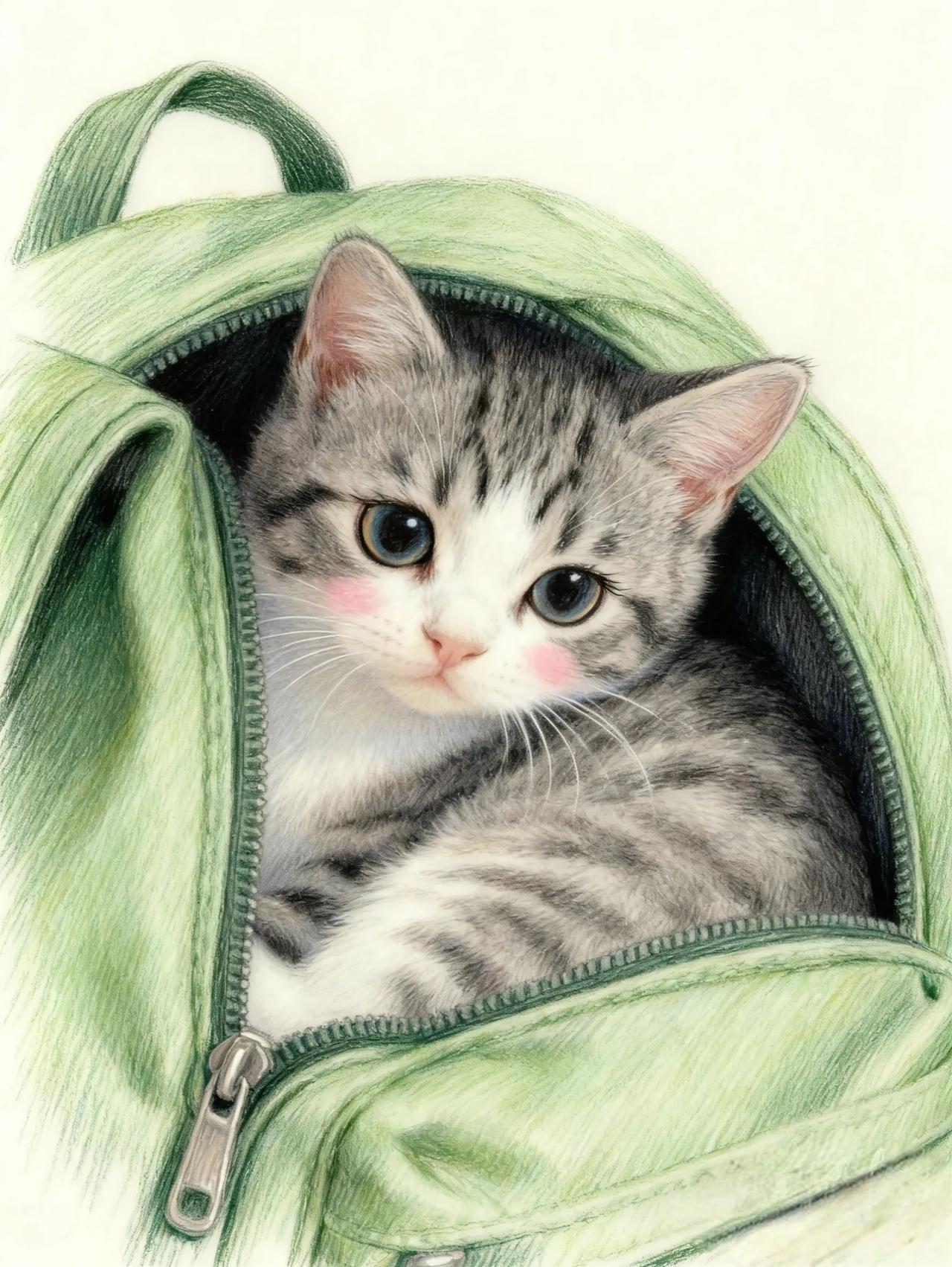 谁能拒绝这只躲在书包里的软萌小奶猫呢?每一个表情都像在演我的心动瞬间,治愈感直接拉满。