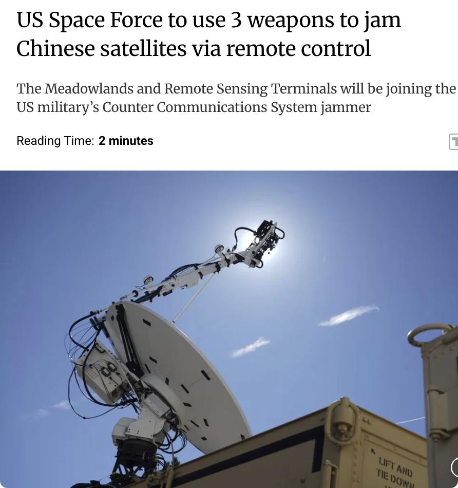 外媒:美国太空军计划使用三种武器通过远程控制干扰中国卫星。 据最新太空军数据,美军即将部署两种新武器,用于临时干扰中国和俄罗斯的情报、监视与侦察卫星,这将使美国军方拥有三种反太空能力。