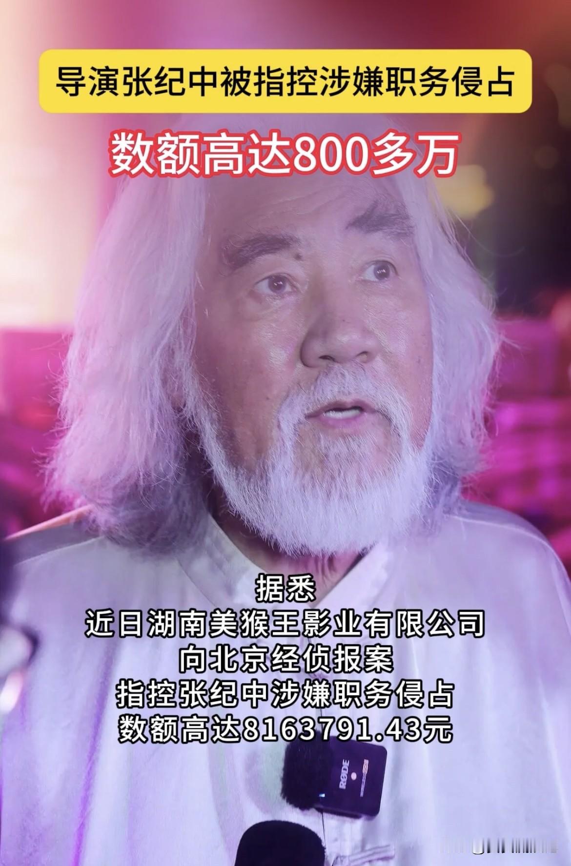 张纪中又摊上事儿了!近日,湖南美猴王影业有限公司报案指控他职务侵占816万多。这家公司法定代表人是他前妻樊馨蔓。报案书显示,2010年7 - 12月,张纪中多次指挥财务转钱到他个人账户,款项与工作无关且未报销。 不过张纪中称这是前妻诬告,之前就有类似情况,湖南法院拒绝立案,北京经侦也没立。像去年600万案件,本是替公司付剧本费。当年离婚他把股、房、钱等都给了前妻,没想到还被纠缠。这事儿到底谁是谁非,就看后续发展了。
