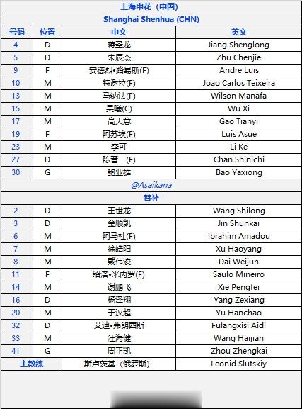 直播吧11月05日讯北京时间今日20点15分,精英联赛东亚区第4轮,上海申花客战马来西亚球队柔佛新山,赛前首发阵容出炉。