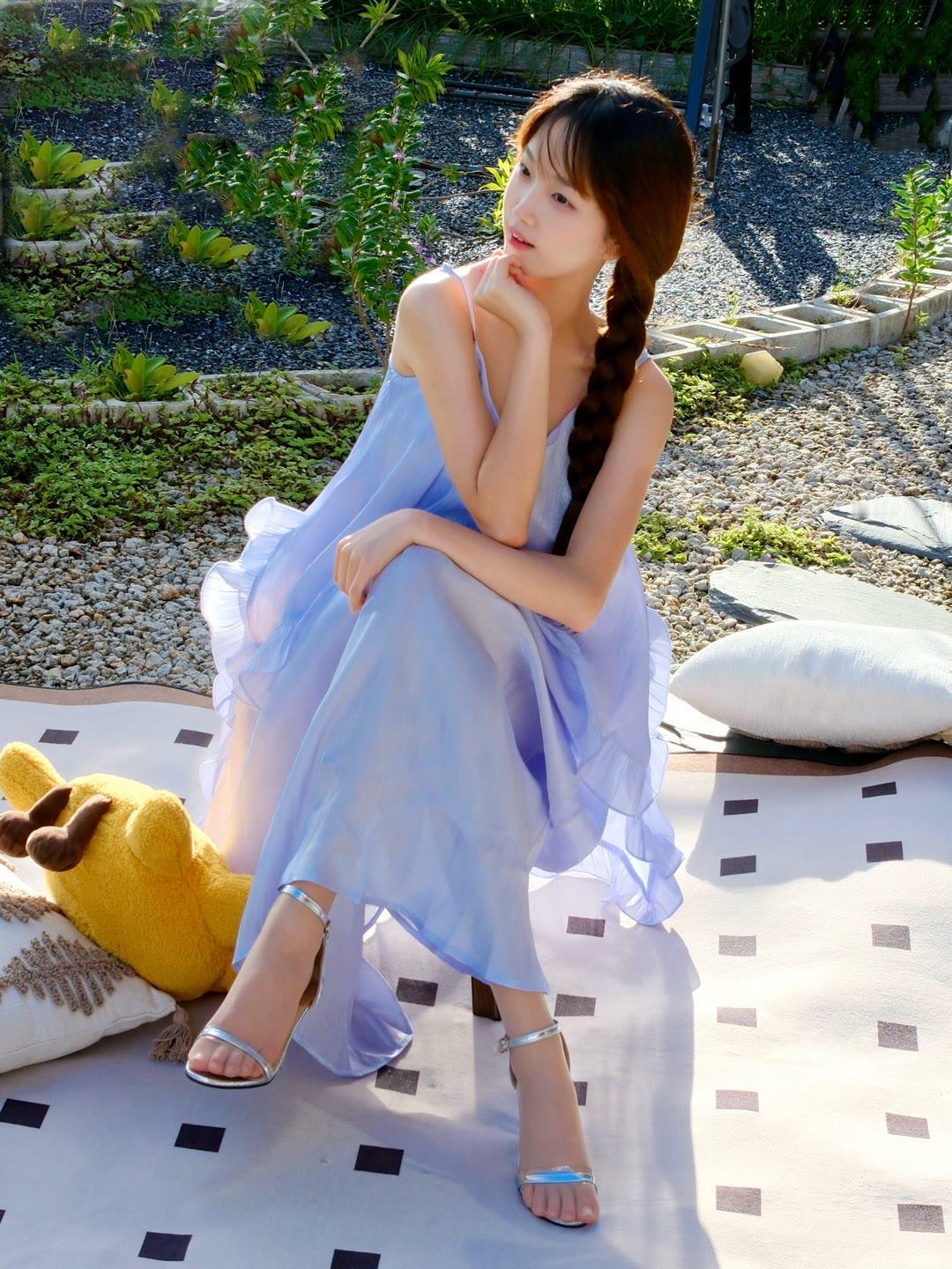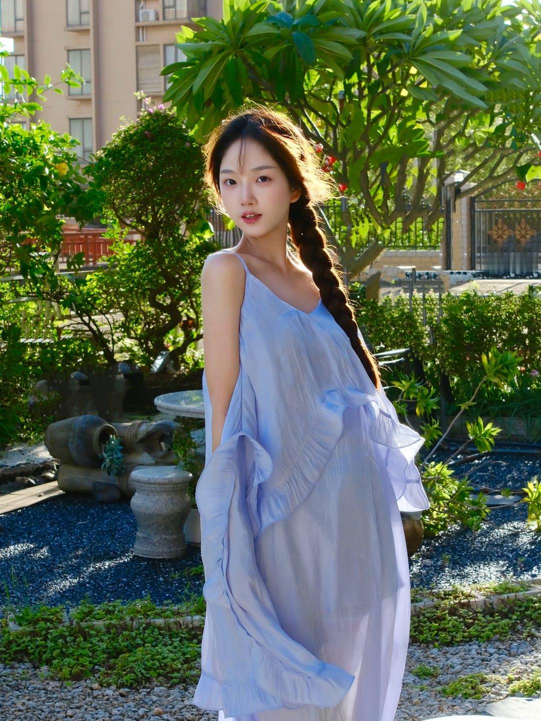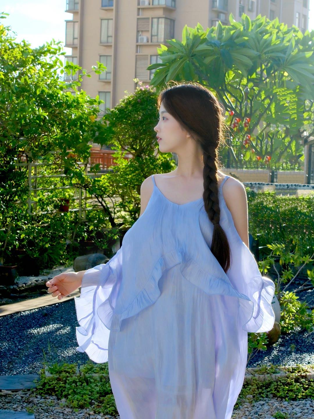这条浅蓝色连衣裙也太漂亮了吧,清新淡雅,露肩的设计更是增添了一份性感和甜美。