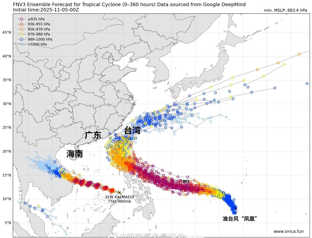 台风“海鸥”目前已经进入南海海域开启第二轮加强,受“海鸥”外围影响,海南岛东南部5~8号会出现中雨到大雨局地暴雨,海面以及沿海高地将出现明显阵风。随后“海鸥”登陆越南中部,其携带的水汽将突破副高北上,本周末(8~9号)给广西地区局地带来明显降水。 目前菲东海域还活跃着准台风“凤凰”(低压32w),预计其后续将冲击全球风王的宝座并经吕宋岛削弱进入南海,再粤东近海转向,由于届时台风会不断缩小环流减弱,不会造成严重影响