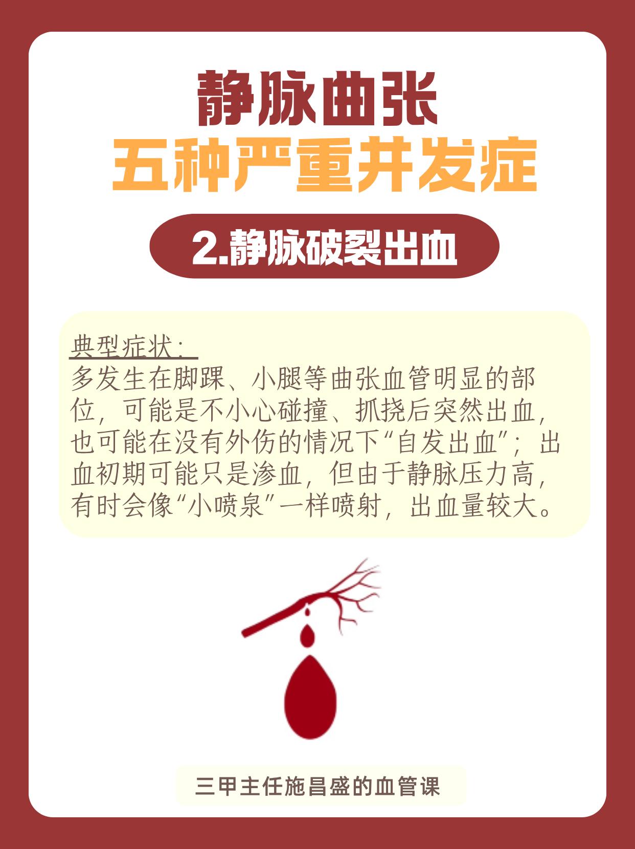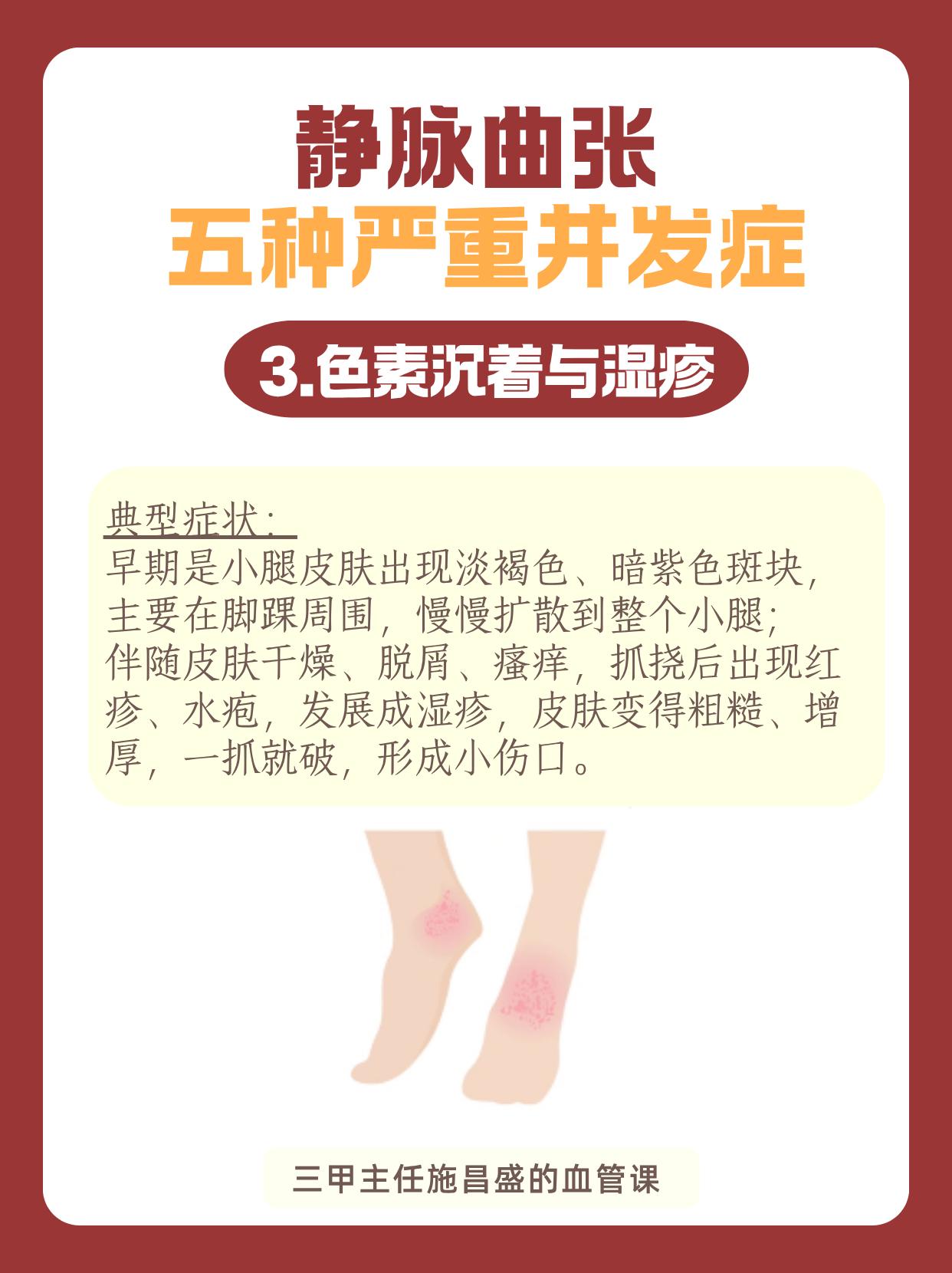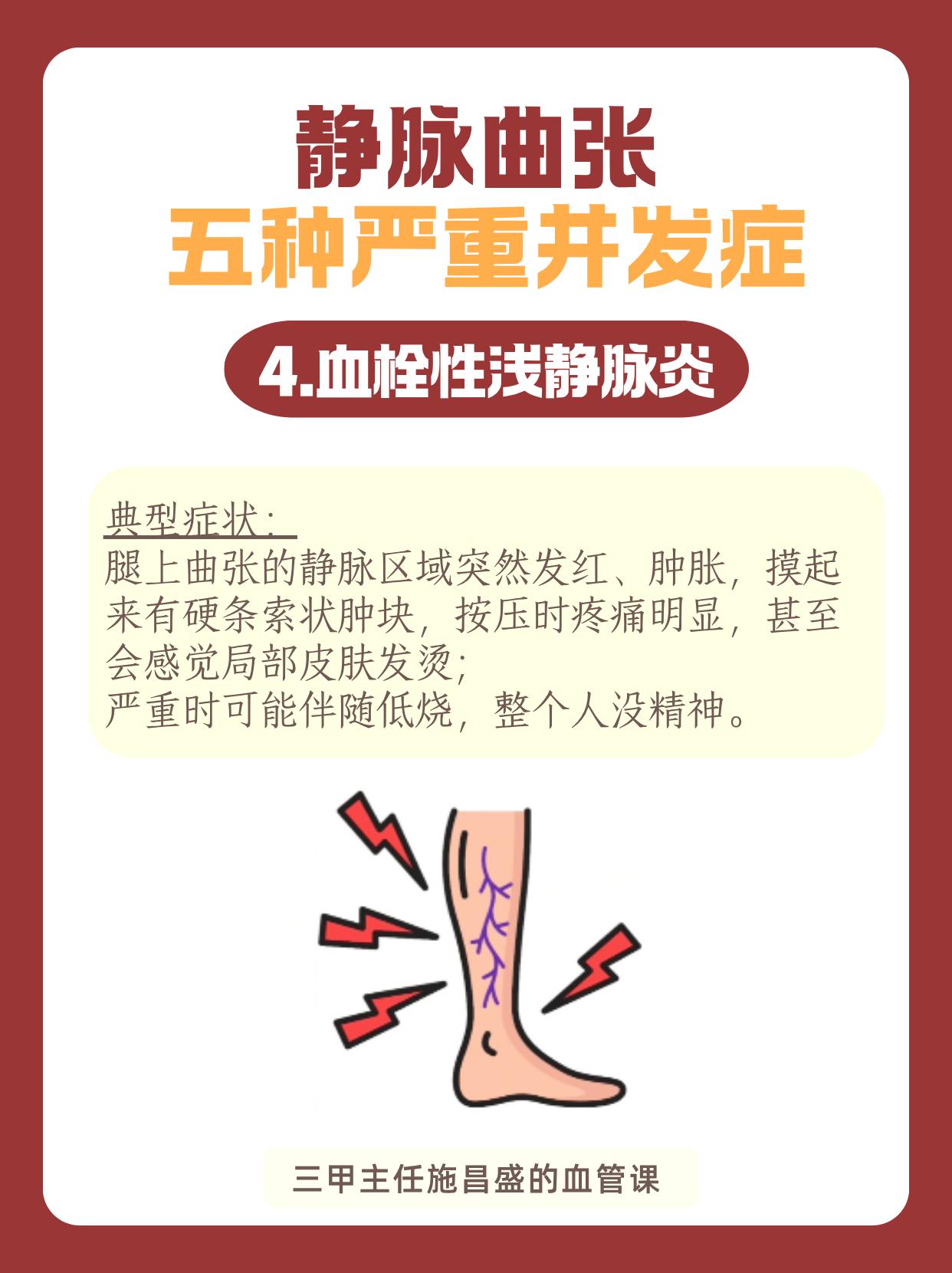静脉曲张的五种严重并发症。很多人觉得静脉曲张只是腿上“青筋凸起”,影...