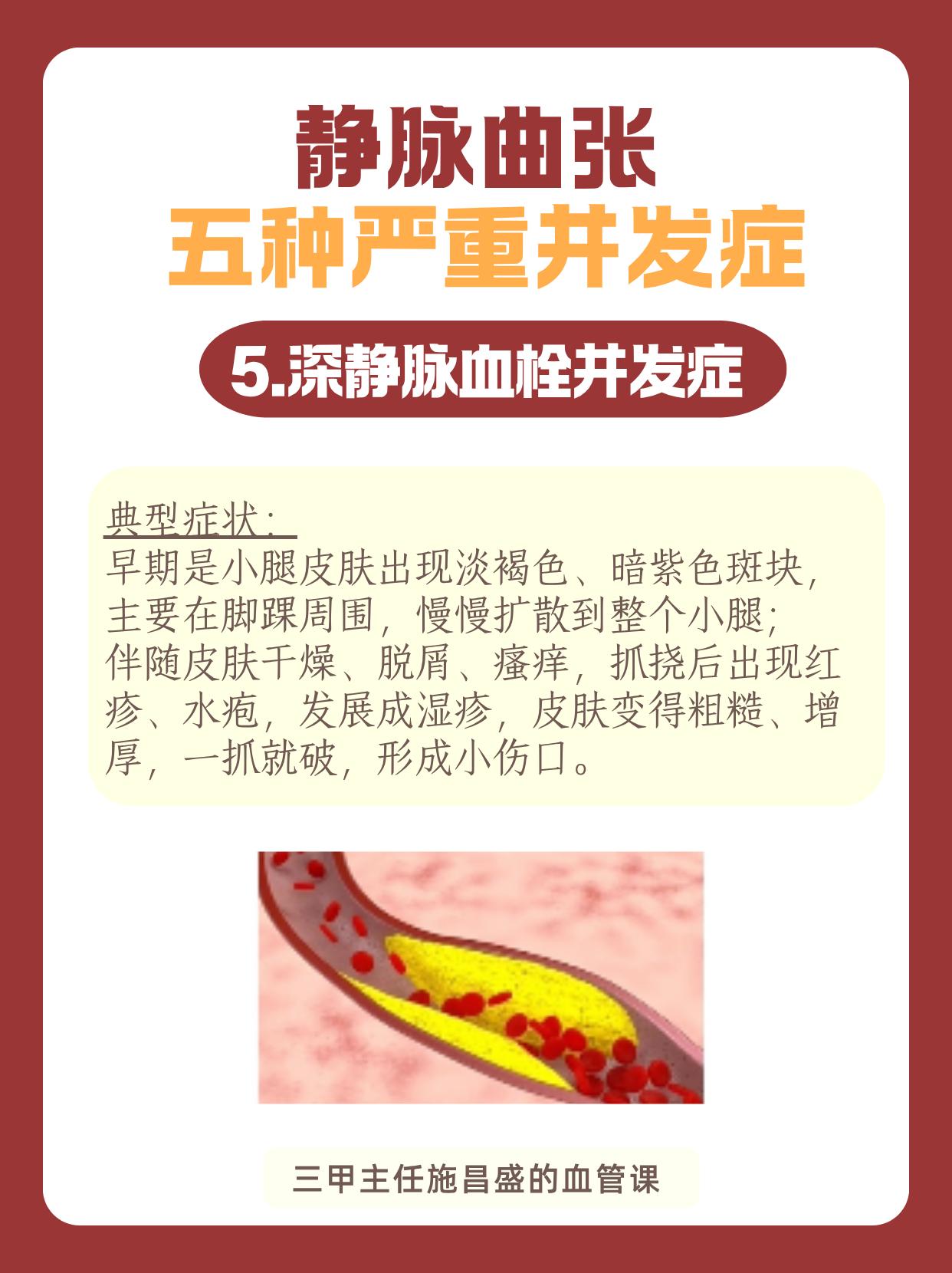 静脉曲张的五种严重并发症。很多人觉得静脉曲张只是腿上 “青筋凸起”,影...