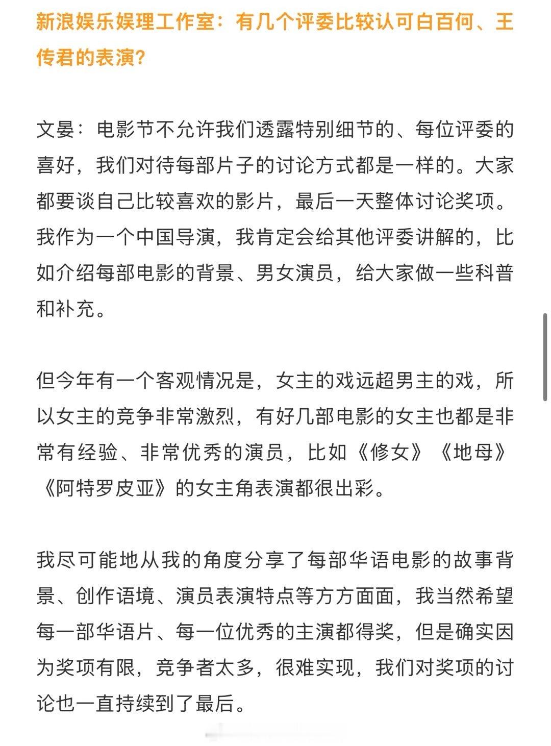 2.今年女主的戏远超男主的,所以评审团讨论到了最后,很难抉择;