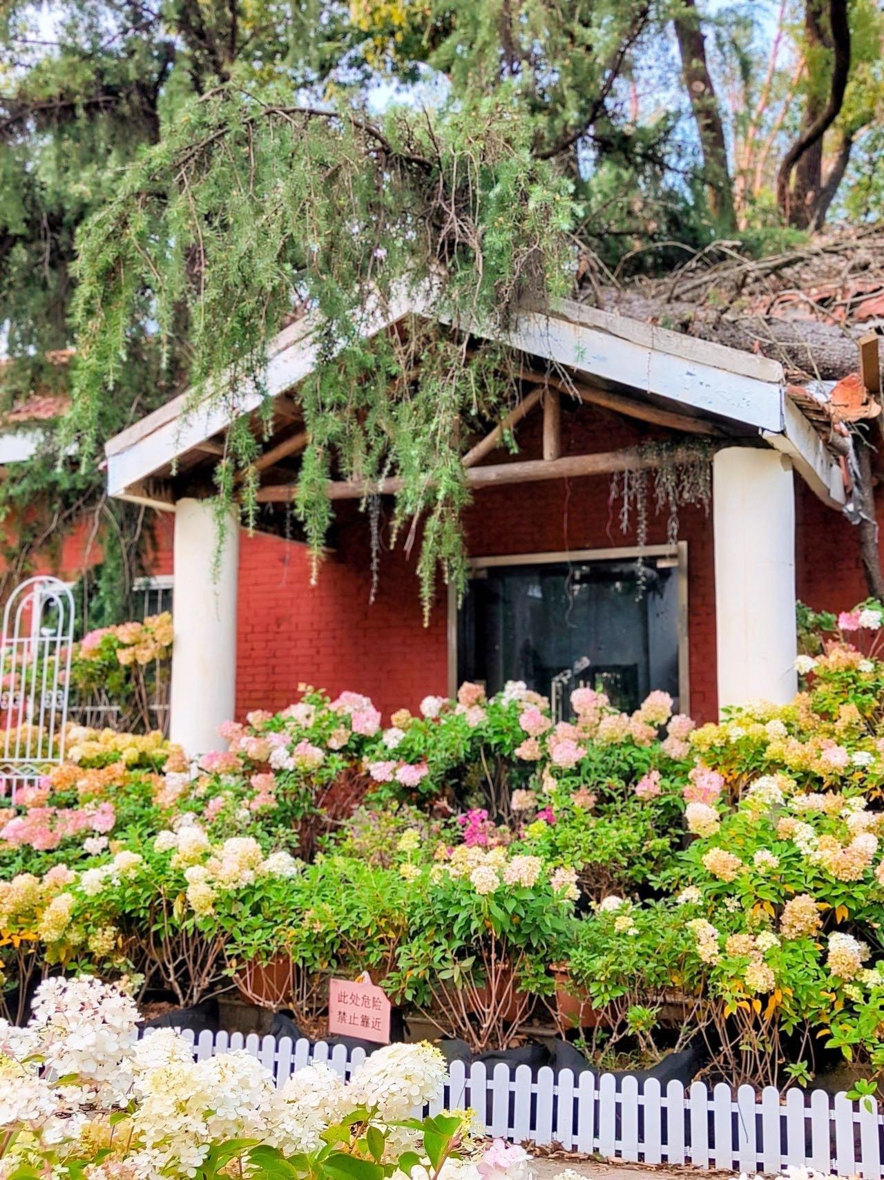1500多株圆锥绣球正在上演静默变装秀,从初开的奶油白、浅绿,慢慢变成少女粉