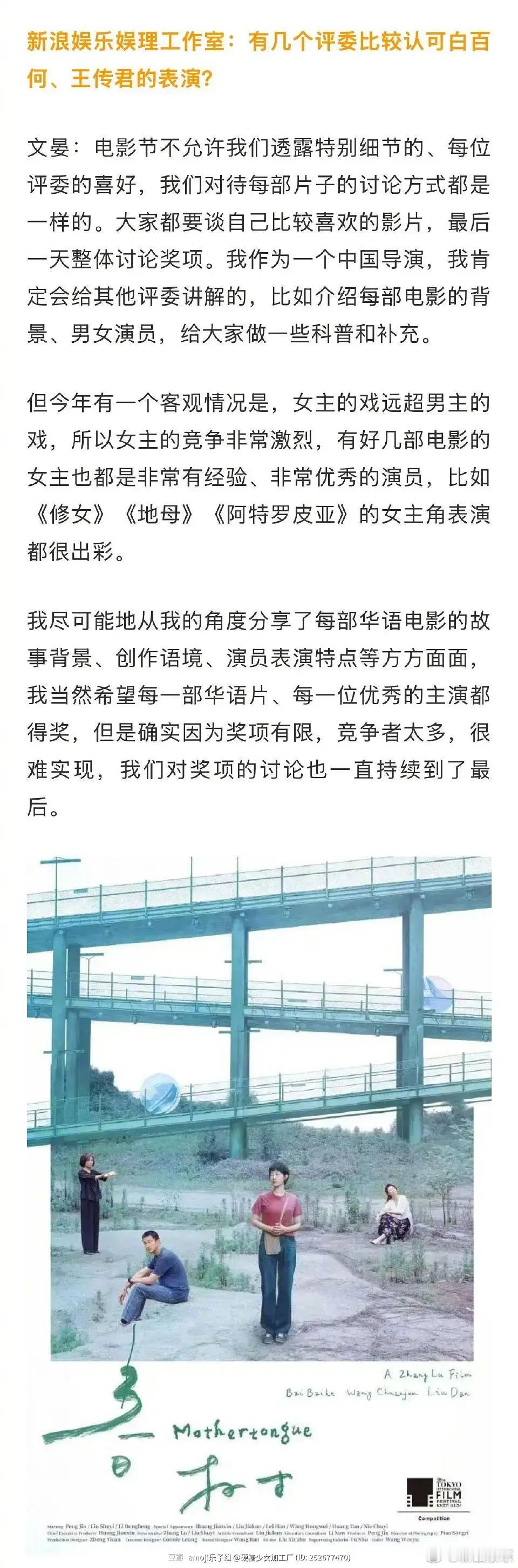 文晏的采访。第一沪圈无稽之谈。第二男演员里最喜欢的是蒋奇明,但是不可能她喜欢的都能拿奖。第三女演员竞争激烈,表演出色的除了影后还提到了另外三个女演员包括冰冰,没有白百何。结合桂纶镁的说法,真相如何很明显了
