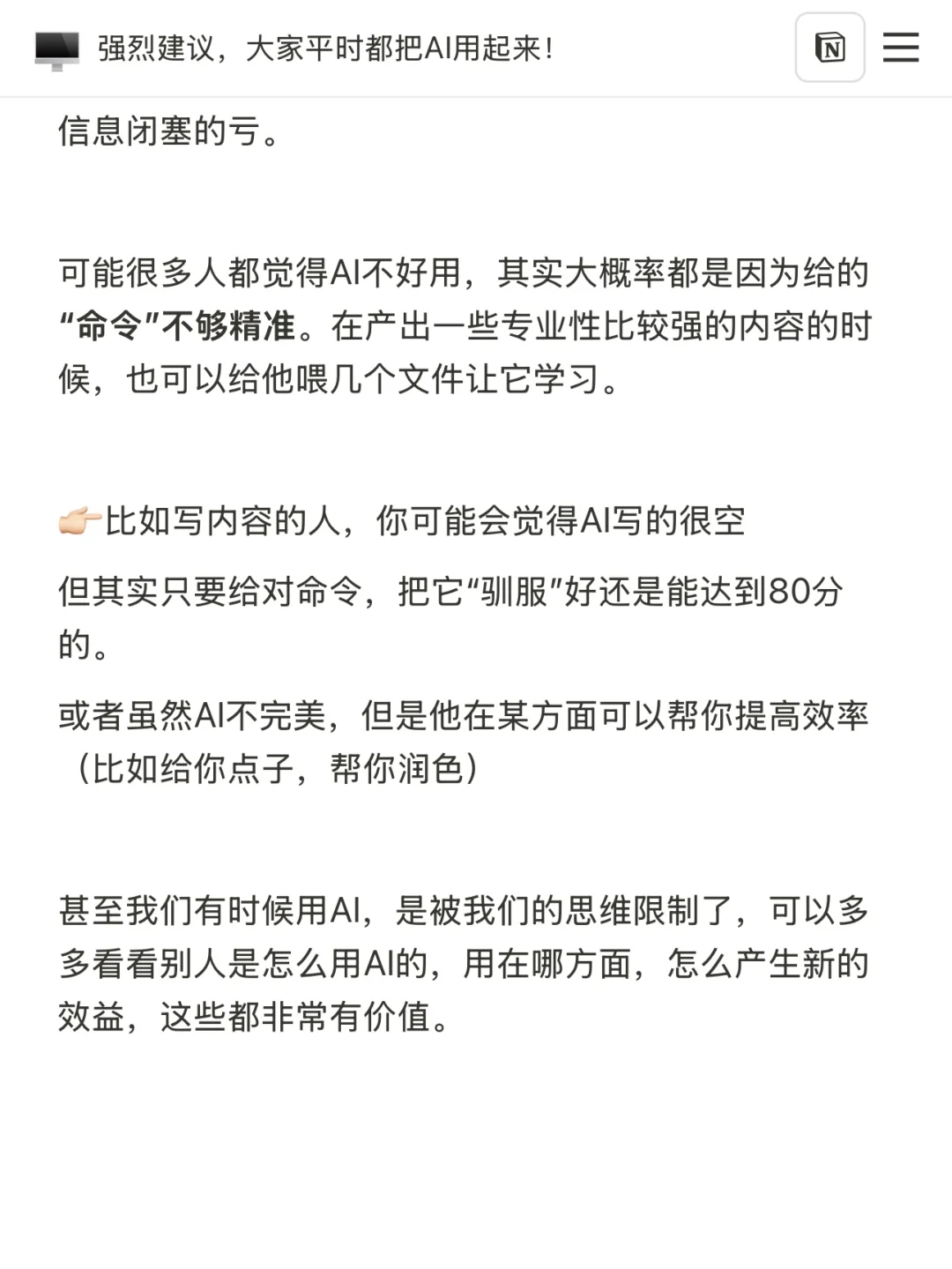 甚至我们有时候用AI,是被我们的思维限制了,可以多多看看别人是怎么用AI的,用在哪方面,怎么产生新的效益,这些都非常有价值。