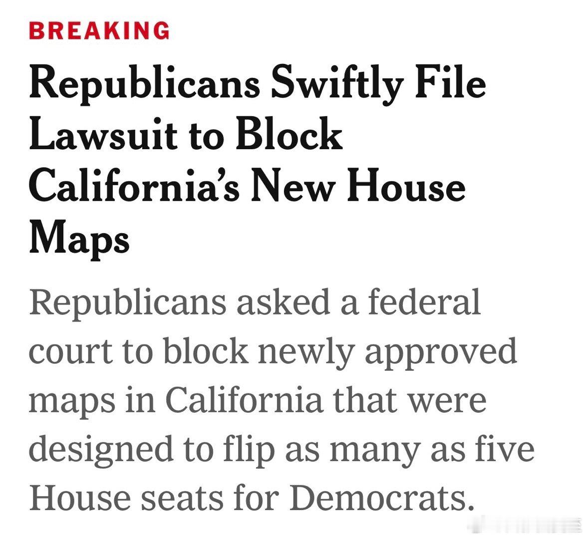 共和党已经提出诉讼,试图阻止加州新的选区图