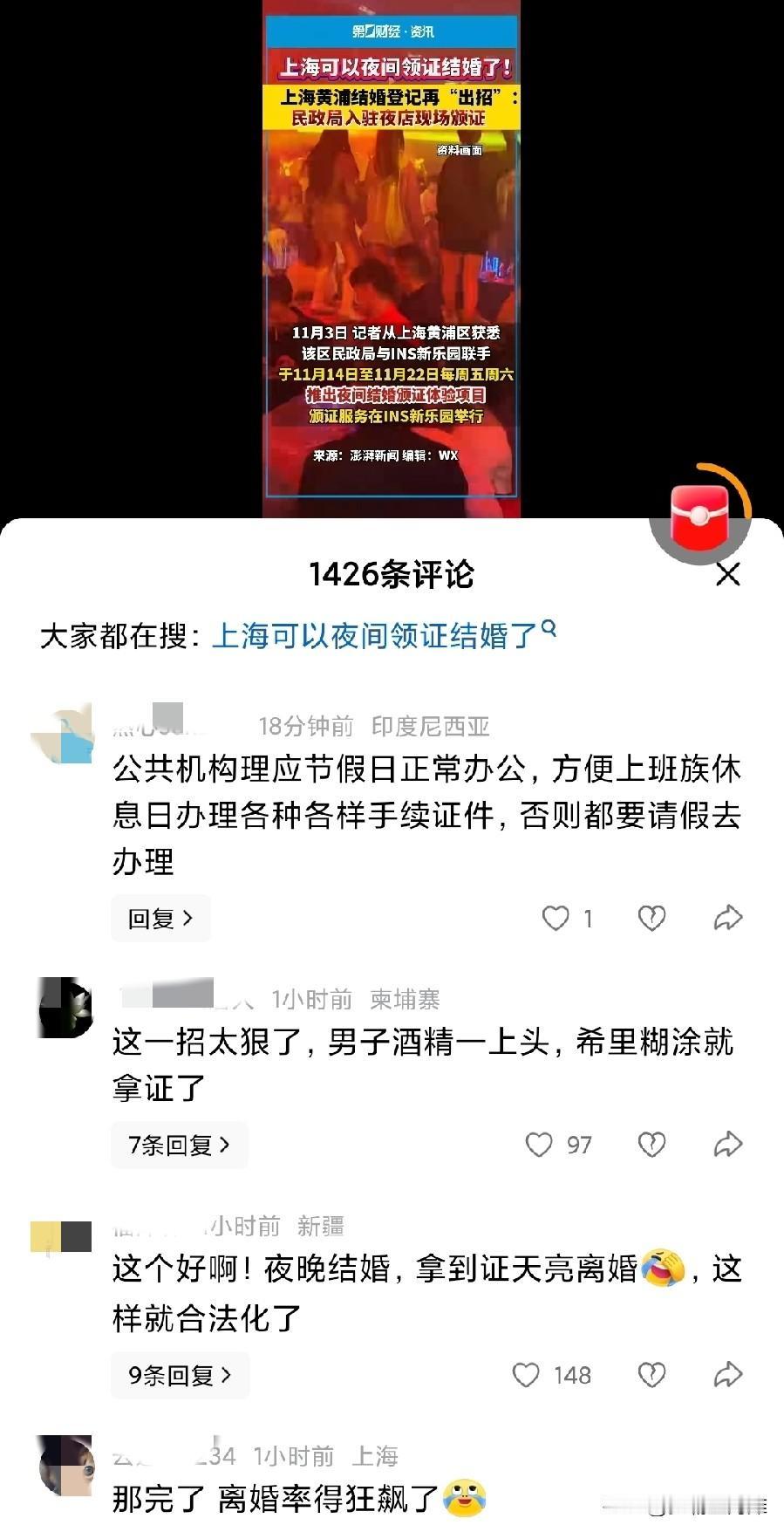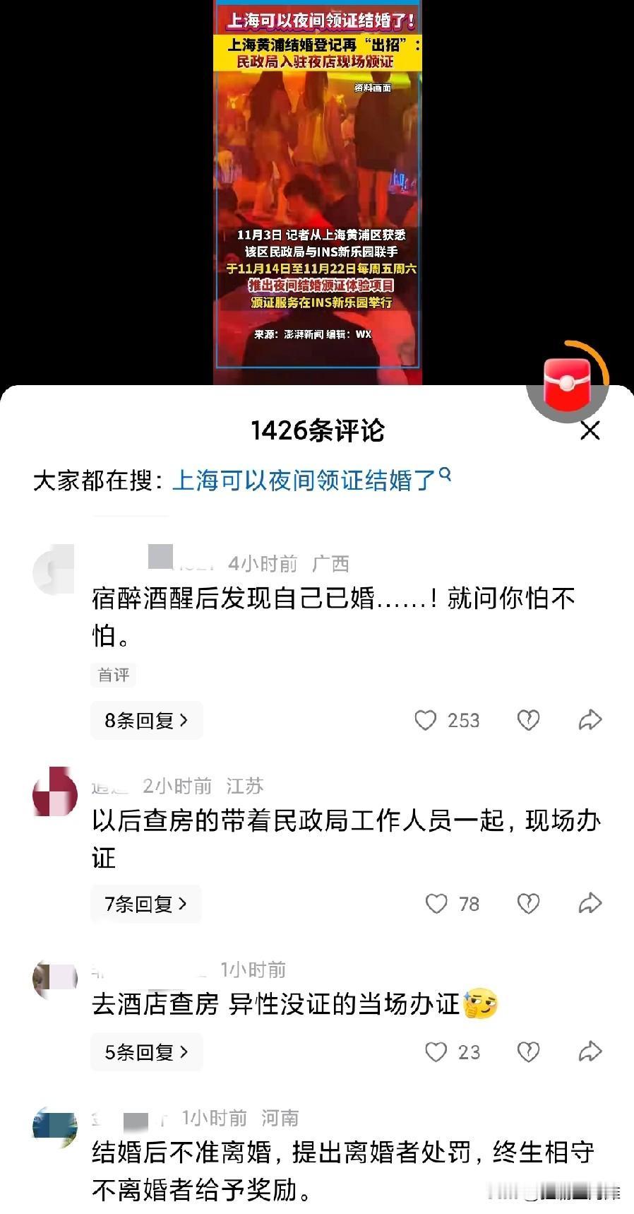 现在各地为了提高结婚率真的是煞费苦心,上海某民政部门居然入住夜店,现场办理结婚证。 不过有网友不认同这种做法,毕竟夜店很多都是结了婚的去放松享受的。 以前结婚就是忽悠对方,现在直接说走去结婚,发现对方已婚这不尴尬吗?办理结婚证流程 民政局现状