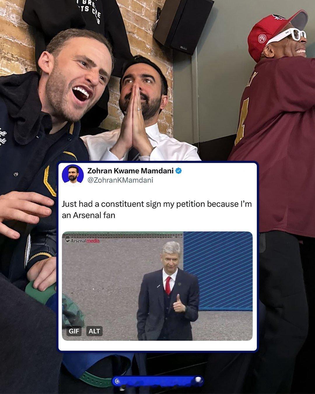 马姆达尼赢得纽约市长选举 纽约市新任市长佐兰·马姆达尼是一位彻头彻尾的阿森纳球迷 金秋观赛季