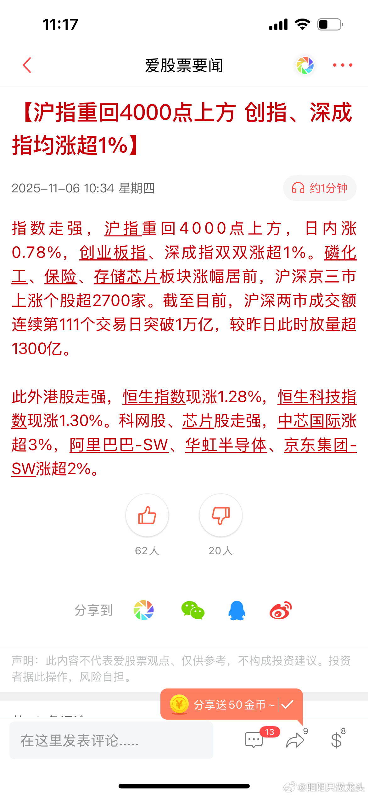 看指数炒股?开盘就跑完了。[偷笑]。