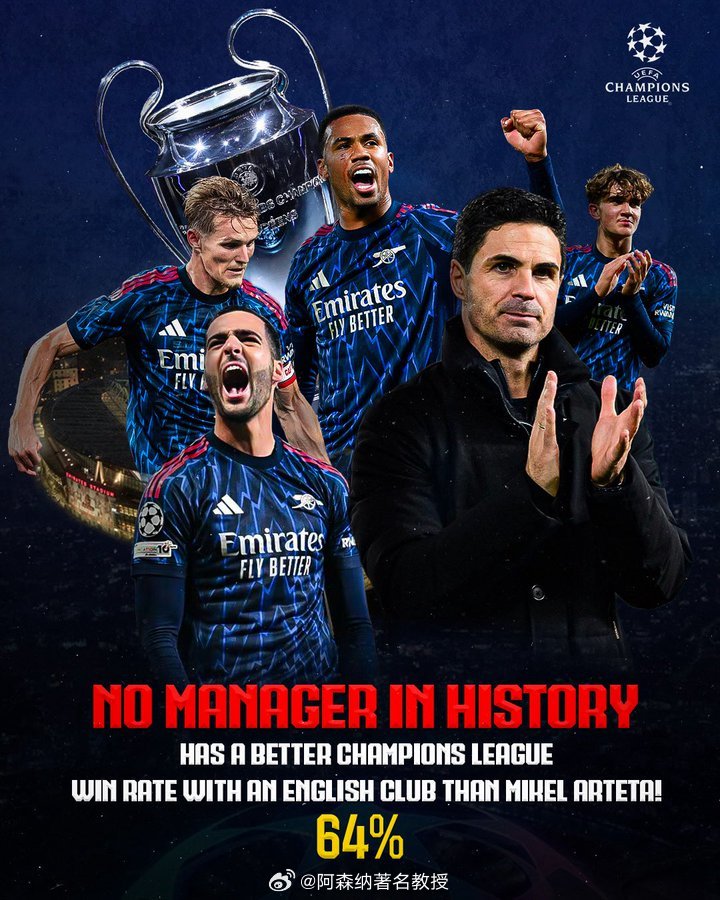 历史上没有哪位教练执教英格兰俱乐部时,欧冠胜率能超过阿尔特塔,阿森纳今年能最终夺冠吗?🏆 金秋观赛季 阿森纳著名教授