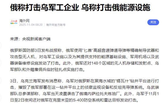俄罗斯和乌克兰宣布了 11月4日,俄罗斯国防部发布战报称,使用“匕首”高超音速导弹等精确制导武器,对乌克兰军工设施及其能源基础设施、军用机场等目标发动了打击,同时针对148个区域的无人机存储发射点及外国雇佣兵驻扎点进行了攻击。 俄罗斯国防部这则战报一出来,外界立马就盯上了其中的“匕首”导弹。有俄罗斯媒体从基辅线人那里拿到消息,这导弹连夜砸向了两套德国刚援助乌克兰的“爱国者”防空系统部署点。 这可不是小事,“爱国者”是乌克兰防空的重要依仗,德国刚送过来就成了打击目标。 乌克兰方面很快有了动静,乌军监测到俄军当天发射了三枚“匕首”导弹,还宣称成功拦截了其中一枚。 他们同时强调,导弹飞行方向指向的是日托米尔州,不是俄军说的基辅打击点。双方说法对不上,具体损毁程度和人员伤亡也没公开,这事儿暂时成了罗生门。 除了基辅的防空系统,其他地方的爆炸声也没停。尼古拉耶夫州的“马里耶夫卡”压缩站被导弹命中,当场燃起大火,当地政府已经确认了这个消息。哈尔科夫周边也遭殃了,一处专门维修无人机和装备的乌军设施遭到袭击,地下抵抗组织的人透露出了这个情况。 俄罗斯军事专家瓦西里・丹德金站出来解释了这次行动的目的。他说俄军加大“匕首”导弹的使用频率,就是为了削弱西方对乌克兰的武器供应,打垮基辅的军事潜力。尤其是无人机组装车间和军用机场,都是重点打击对象。 这位专家还特意提到,“匕首”导弹能穿透深层地下设施。乌克兰很多军工设施和机场机库都是苏联时期建的,埋得特别深,普通武器打不动,但“匕首”能钻进去摧毁目标。他同时透露,这么密集地用这种昂贵导弹,说明俄军库存很充足。 其实这不是俄军近期第一次动手,11月1日的时候,俄国防部就说过,部队在哈尔科夫州库皮扬斯克等地打击了乌军,还炸了保障军工生产的能源设施和无人机存储点。乌军当时也回应,说在库尔斯克等方向击退了俄军进攻,还反击了俄军的人员装备集结区。 有意思的是“匕首”导弹的神话这些年一直在打折扣,乌克兰从2023年5月就开始拦截这种导弹,到2025年中期已经拦下了几十枚。这次俄军虽然宣称打击成功,但乌军还是一如既往宣称拦截了部分导弹,看来双方对战场态势的说法还是差得很远。 俄军这轮打击的针对性很明确。当前乌军正面临兵力短缺和西方援助不确定的问题,美国官员都预测乌军可能要从库尔斯克撤退。这时候打垮他们的军工设施和能源供应,等于在伤口上撒盐。 不过乌克兰的抵抗也没停。就算防空系统可能受损,乌军还是靠着导弹和炮兵部队持续反击俄军集结区。只是能源设施反复被打,全乌紧急停电的风险又高了,普通老百姓的日子又要难上加难。 来源:海外网 【俄称打击乌军工企业 乌称打击俄能源设施】