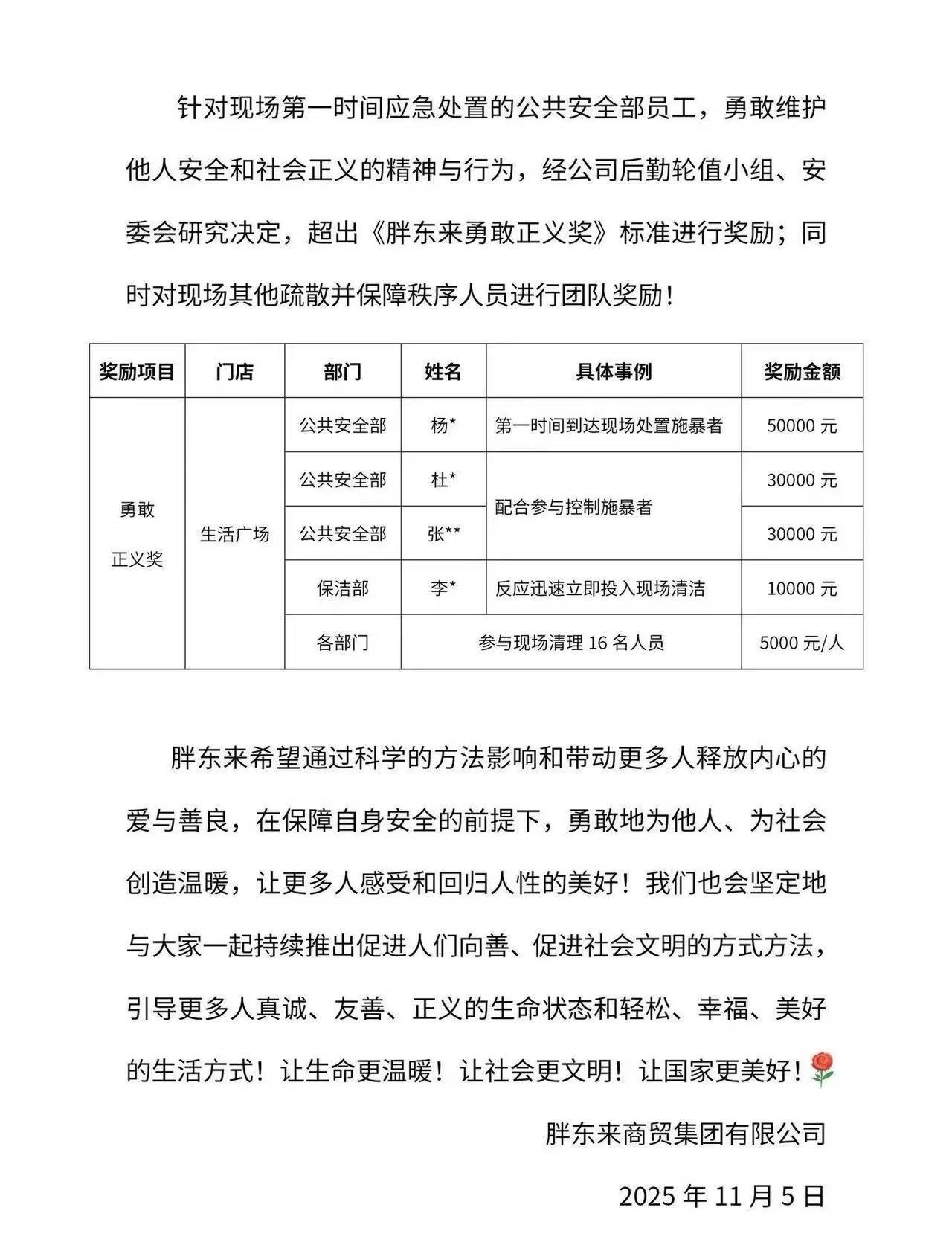 胖东来勇敢正义奖励公示。 胖东来是真的很好,我以为最多奖励的是5000,这直接奖励5万和两个3万,一共奖励了20万,这是真的很舍得奖啊!