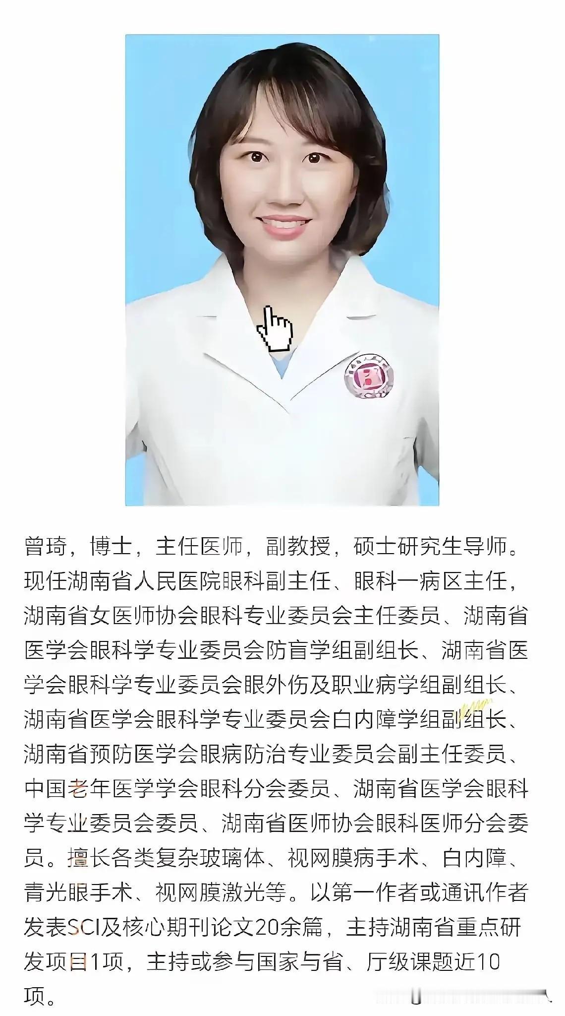 曾琦是1981年的,今年44岁,妥妥的女性中的佼佼者。不光有体面的工作,职称也很过硬——副教授、副高职称,还是硕士生导师、眼科主任。能做到这份上,自身肯定特别优秀,按说也该有个同样优秀的配偶,家庭本该圆满。 再看祖雄兵,1975年生,今年正好50岁,是湖南人民医院泌尿外科的带头人。头衔更厉害:教授、博士生导师,还是博士后合作导师,自身能力绝对出彩。这么有本事的男性,想必配偶也很优秀,家庭基础本该很稳固。 俩人都是行业里的精英,一路打拼到这个位置,肯定付出了比常人多得多的努力,本该成为各自家庭的骄傲、行业的榜样。可偏偏没守住底线,不管是一时糊涂还是别的原因,都辜负了多年的奋斗,也对不起身边的家人。身为公众人物和医护骨干,更该懂得责任二字,珍惜来之不易的一切才对。