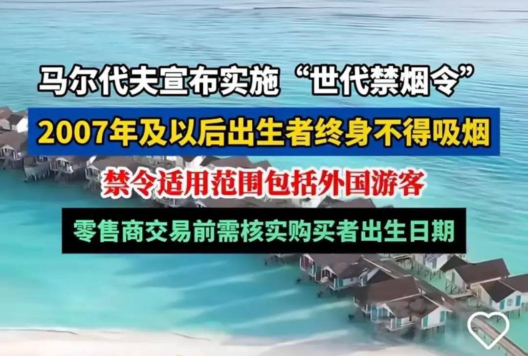 快讯!快讯!。 马尔代夫卫生部突然宣布了。 11月1日起,马尔代夫对出生于2007年1月1日及以后的人实施“世代禁烟”,据官方通告,游客同样适用。这不是场所禁烟,而是按出生年份设门槛,直接堵住未来的购买和使用通道。 细节摆在这儿:零售商必须在交易前核对年龄,违规将被罚5万马尔代夫拉菲亚,约合3200美元。这等于把管控重点从“看见有人抽就劝”变成“看见有人买就查”,路径更清晰。 拿国内对照一下。北京2015年执行室内全面禁烟,餐馆、商场、地铁站都查,个人现场劝导和罚款200元并行。这种做法是对场所的精细管理;马尔代夫这次则是对人群的明确界定,两条路,目标都指向减少接触烟。 放到外面看。新西兰曾在2022年通过类似做法,后在2024年取消;英国提出过“烟零一代”的方案,仍在讨论阶段。据马尔代夫通告,这次执行不仅覆盖本地居民,还覆盖游客,力度和范围更直给。 具体执行少不了工具。马累城区和各旅游岛的便利店、酒吧、免税柜台,都要看身份证或护照做年龄核验,这会改变前台流程和培训。简单直白的核验规则,有利于让一线人员少犯错。 健康层面的动因也很明确。世卫组织长期提醒吸烟与心肺疾病风险相关,各国常见的做法是控场所、控广告、控销售。马尔代夫这次把“控销售”再往前推一步,减少起始人群的接触。 时间点很关键。从11月1日开始,宣传、标识、查验、处罚要同步到位。马尔代夫此前已有公共场所限制,这次把年龄门槛叠加进去,形成组合拳,方便执法人员按表操作。 旅游业会感受到直接变化。酒店、餐饮、潜水店前台要学会快核验,机场柜台也要跟进年龄提示。短期可能不太顺手,但只要流程固定、标识清楚,游客心里有数,商家也能少麻烦。 再看我们身边的零售场景。线下便利店做年龄核验相对容易,线上渠道更考验技术和履约保障。马尔代夫的做法给了一条清晰思路:先把住入口,再考虑其他配套环节。 供应端也会跟着调整。马尔代夫本地市场体量不大,游客是主要消费群体,规则变了,商家会主动缩减相关库存,把风险降到最低。时间一长,售卖端的结构就会动起来。 这件事的信号不复杂:减少起步人群接触烟,靠的是明明白白的年龄规则和零售核验。只要执行不打折,效果就能看得见。 我们在观察,也在借鉴。场所管理继续做细,销售环节继续抬门槛,宣传、执法、核验形成闭环,空气会更干净,公共空间会更舒服。 收尾:马尔代夫把口子收在“谁可以买”的那一层,这步走得稳、走得直,值得盯紧看它如何落地。