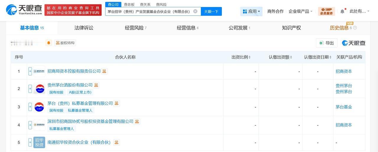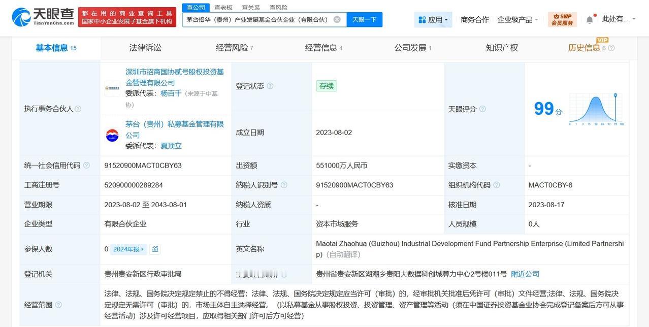 茅台旗下基金等在深圳成立信通一期私募基金出资额约2亿 华信通一期私募股权投资基金合伙企业(有限合伙)成立,执行事务合伙人为深圳市招商金葵资本管理有限责任公司,出资额约2亿人民币,经营范围为以私募基金从事股权投资、投资管理、资产管理等活动。合伙人信息显示,该基金由茅台招华(贵州)产业发展基金合伙企业(有限合伙)、深圳市招商金葵资本管理有限责任公司共同出资。 天眼查信息: