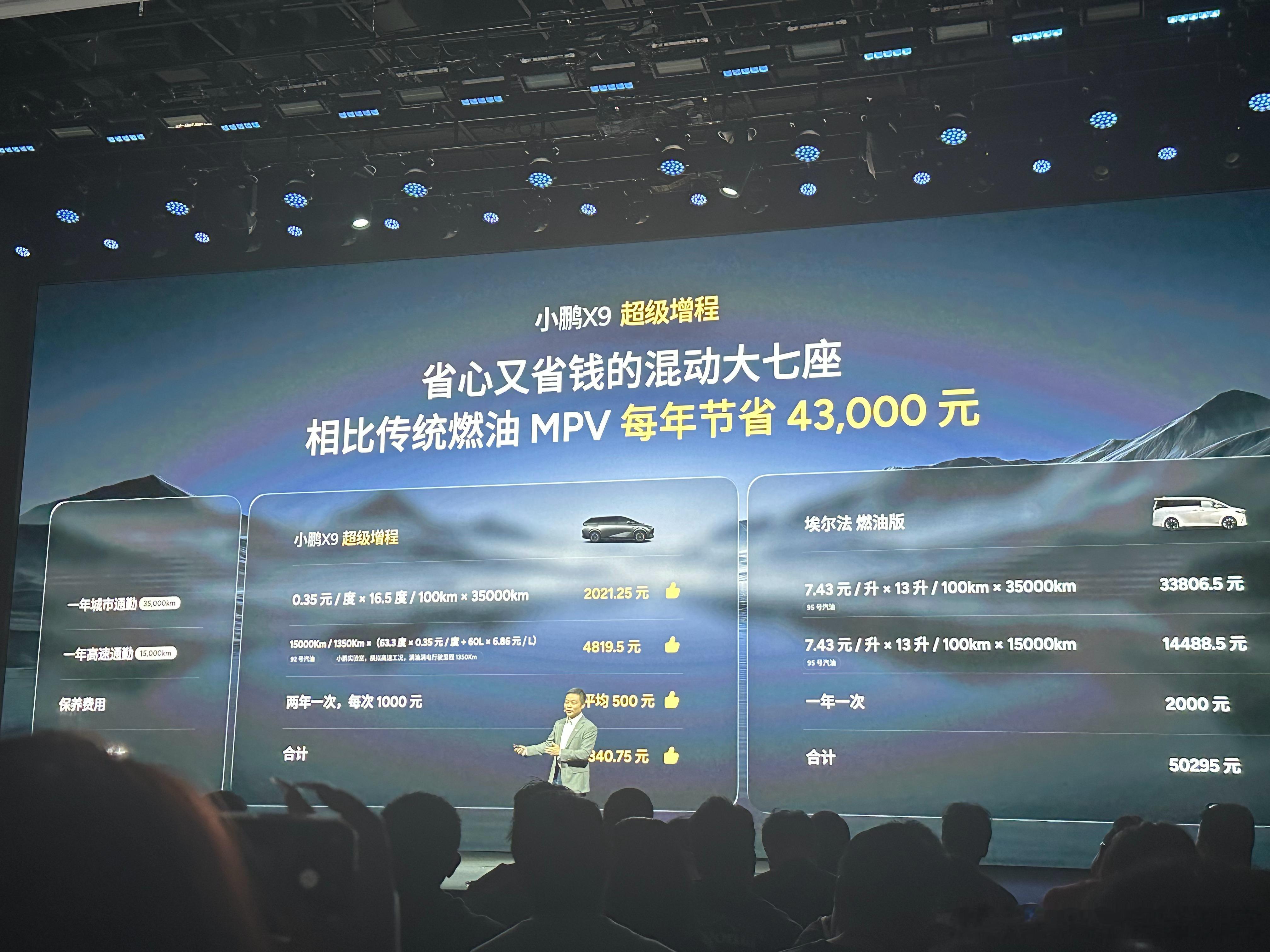 小鹏X9增程版相比传统燃油MPV每年节省4.3万。