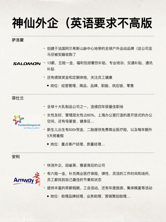 👉🏻其实英语在外企是加分项、不是必须项,英语要求高不高一般是根据所做的业务、面向的客户、你的Leader...等综合决定的