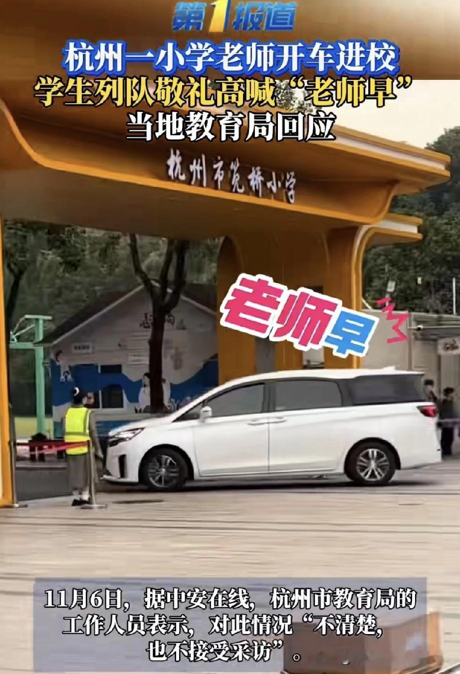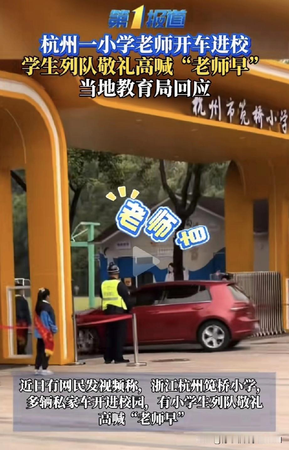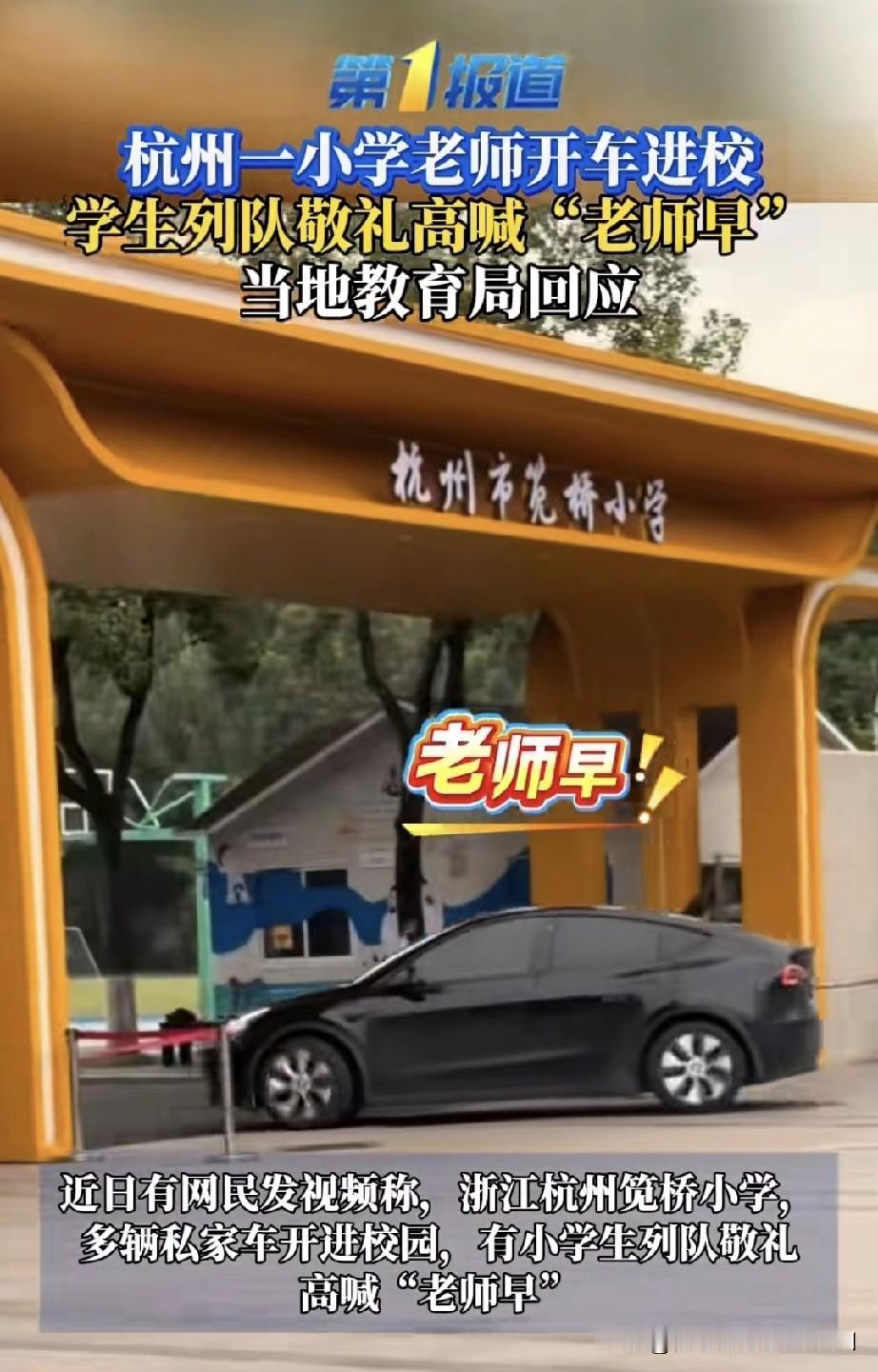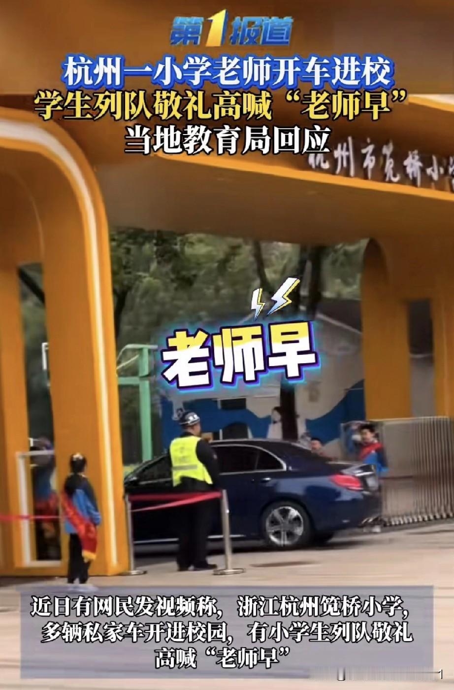 杭州一小学老师开车进入学校,学生站两侧列队敬礼高喊老师早的视频在网上传开引发网友热议。 我认为是老师走路进学校,学生喊一声老师早上好是理所应当,老师们开车,坐车进入学校,学生就不要喊,如果是喊了就老师就应该要有回应,否则就是摆谱,给人一种高高在上的感受。 学生见老师打招呼,这是有礼貌的行为,应该提倡!你开着车,让学生大声喊老师早,就连车窗都不放一下,这是什么教育,是不是自己高高在上,气派十足的感觉,这种官僚主义作风真的要不得。 有记者联系了当地教体局工作人员表示,对此情况,不清楚,也不接受采访。说得理直气壮“不清楚也不接受采访”。等同于拒不认错,坐在位置上只管拿钱其余一概不管,不接受采访就行了。 可不理解,“不清楚”是揣着明白装糊涂,“不接受采访”是不允许舆论监督。殊不知,若要人不知,除非己莫为。 学生得扯着嗓子喊几十上百次吧?还没有一辆车落下车玻璃听到!这是什么景象和关系呢?! 老师的车子都开进校园,人车混行,存在巨大的交通安全隐患,因为已经发生多起校园车辆撞轧学生、教师的惨烈车祸!这个学校负责人必须对现状立刻进行纠正和整改!应该另开个门,和学生不冲突!这样确实不好!这校长也是个典型的没脑子!