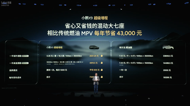 小鹏的增程器我感觉是多方面的省 这次X9增程的发布会,我最关注的就是它的增程器。感觉它可能会成为让增程市场再次“内卷”的标志。从早年理想ONE的三缸机,到如今问界M9、理想L9主流的四缸机,增程一直绕不开两个痛点:一是亏电油耗高,二是普遍得“喝”95号汽油,用车成本都挺高。 X9增程直接把官方亏电油耗做到最低2.53L/100km的水平,更关键的是,它只需要加92号油,这油耗在当前油价下,有时甚至比纯电还省(毕竟油价不会因为在高速所以变贵,但电价在高速普遍都得1.8元以上一度) 最让我觉得有远见的是,小鹏甚至想到了后续的保养问题。他们与嘉实多合作研发了专用机油,将保养周期延长至两万公里一次。这不仅仅是省了点钱呀,还节省了用户的时间和精力,以前可能一年保养两次,现在一次就解决了
