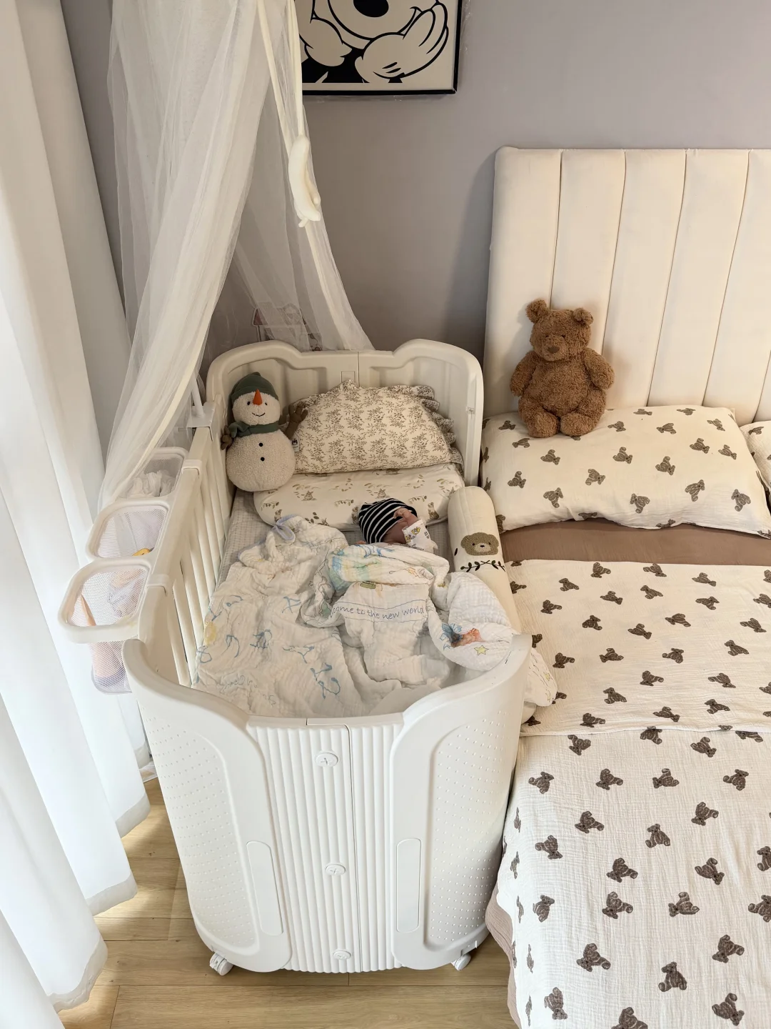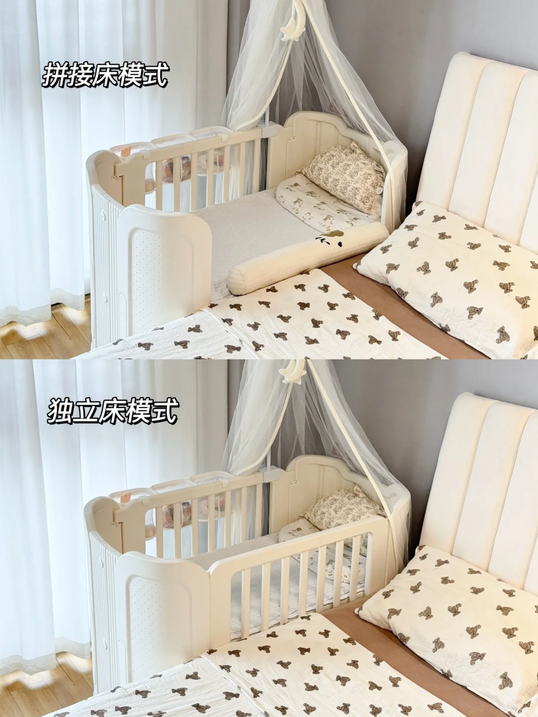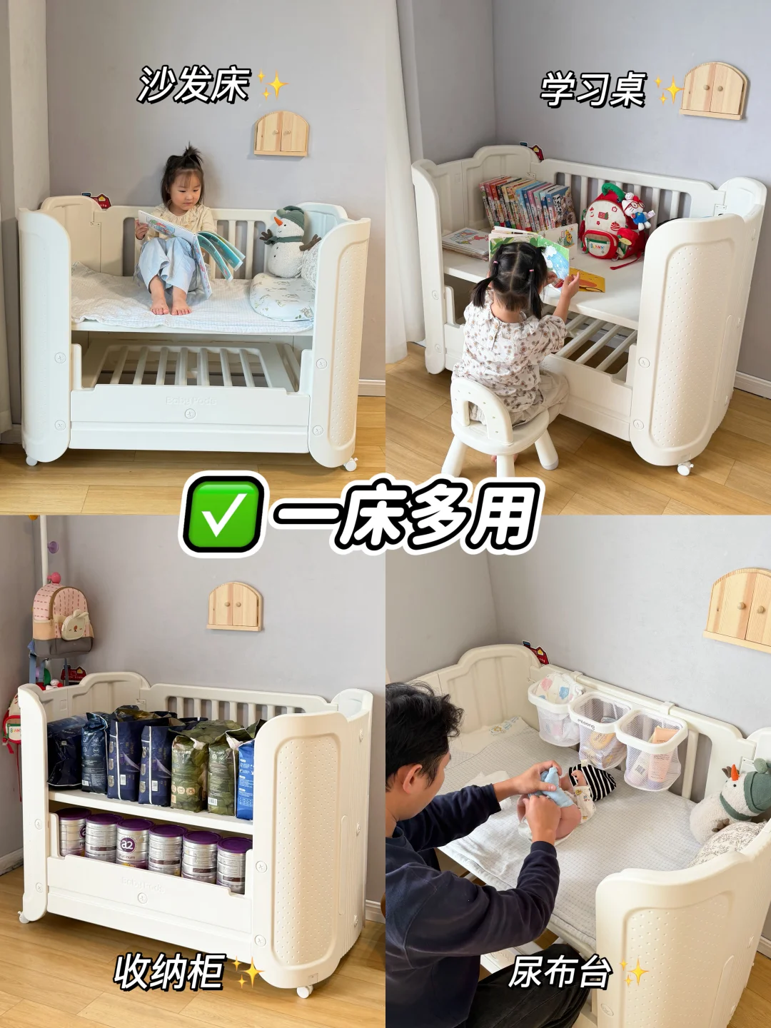 啊,谁懂啊😭 打开就能用,真的好方便 脏了还能直接用水冲洗 而且一床多用有N种用法 婴儿床、拼接床、尿布台、沙发床、游戏桌、地台床👈 自带了静音万向轮 走哪推哪,也不用担心会吵到宝宝 整床有6档调节,能适配大部分床型🥰 侧边档板也能一秒拆卸 婴儿床、拼接床可以随意切换 承重力和稳定性也是杠杠👏🏻 宝宝在上面随意蹦跳也没问题 等娃大了还能改造成秘密基地和收纳柜 闲置不了一点简直是小户型之光! 麻麻们不用纠结了!用一次感叹一次 强列安利🥰