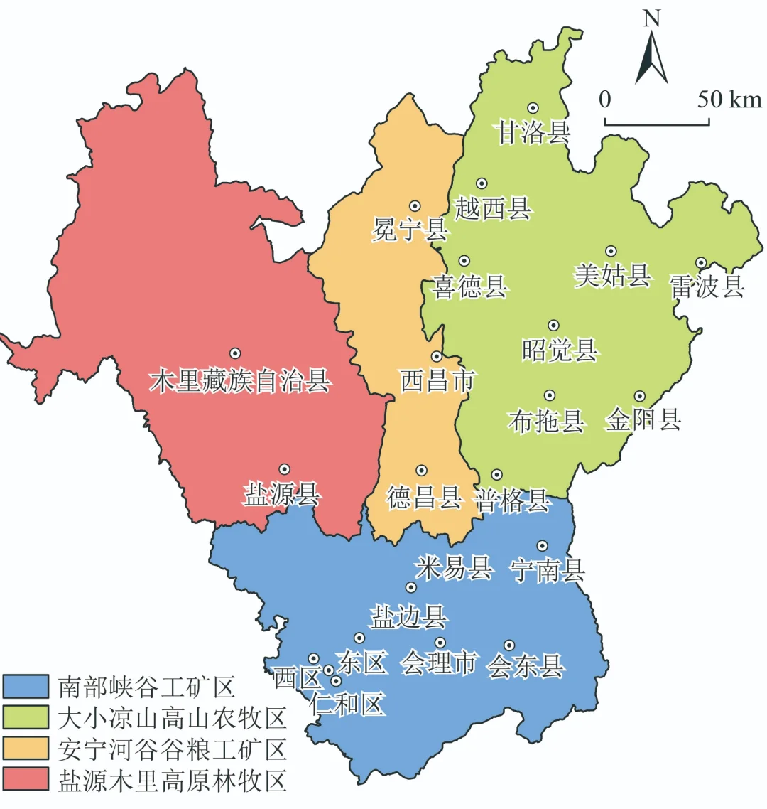 📻山原是指:平均高度较大、面积广阔、构造复杂且总体上完整的大高原。它包括山脉、山系、高原和山间盆地等, 形成一个复杂的综合体。凉山山原区是我国西南部典型的山原, 其位于四川盆地西南缘;北至大渡河, 西至普雄河、尼日河、曼滩河、牛日河, 东南以金沙江河谷为界, 面积近9,000 km2。