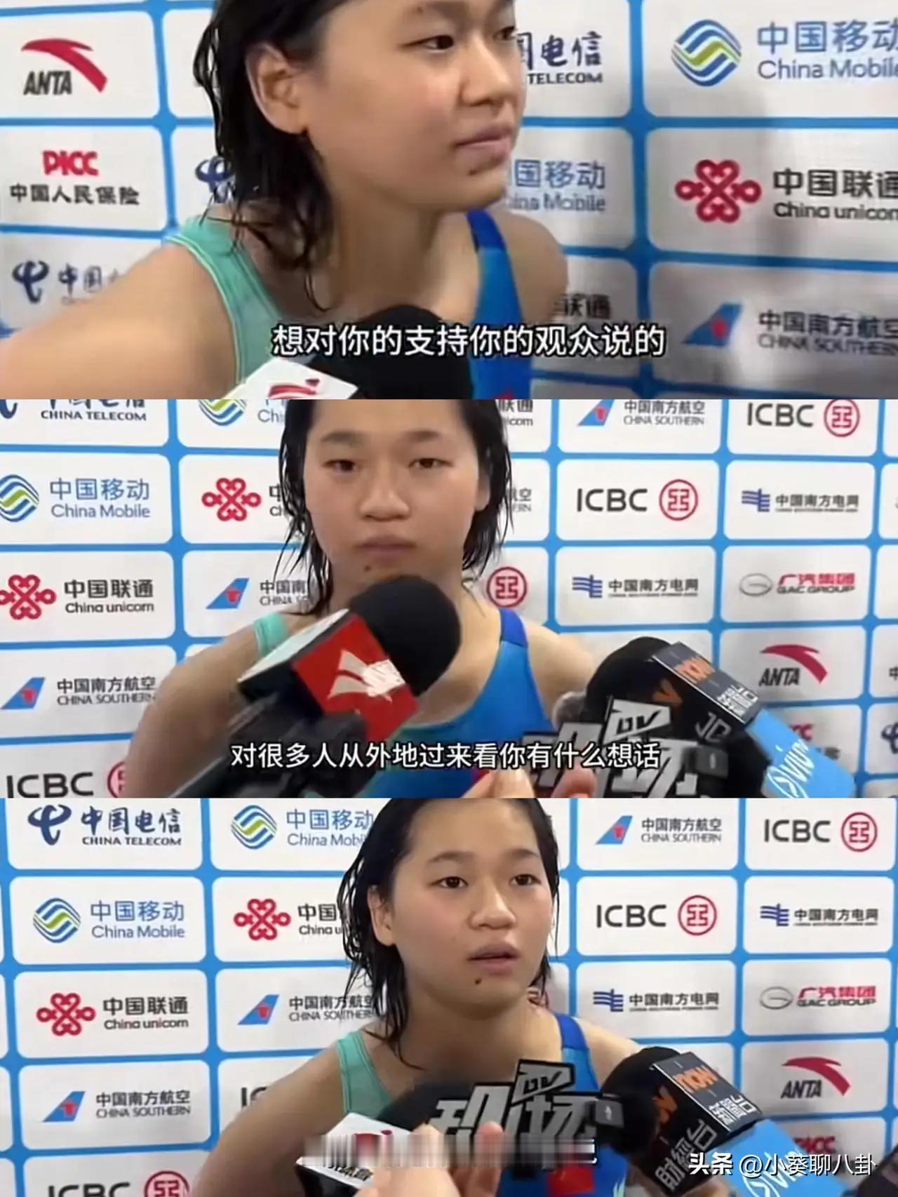 全红婵翻车了才得第五名! 从来没有那么低的名次过吧? 但是更让人生气的是比赛结束后 记者就马上拦住问 你有什么话想对喜欢你的人说 这么多支持你的人千里迢迢来看你比赛 你有什么想说的? 第五名就要质问一下吗? 谁都不是常胜将军! 请给运动员喘气的机会吧! 网友评论: 做什么职位,敬业一点吧,提前做做功课好不好?怎么样提问,没有一点水准吗?现在记者是谁都能当的吗?还真不如跑外卖的说话好听。 世界上那位世冠军能永远站在世界笫一的位置上,第五怎么了,你沒有看到她咬着牙坚持跳吗? 管记者啥事,她的压力来自粉丝。她输两次她的粉丝就会说下次一定会赢,无形中给了她很大压力她不得不拼命努力。 毕竟拼了两届了,名和利也都有了,既然没了自律,还不如选择退了,去一心读书深造。 带伤参赛,且和队友配对不到一个月,这个成绩实属正常,也不算差,希望自媒体不要过度解读,带偏节奏,公平公正的对待婵宝,请放过她! 全红婵 全红婵勇夺冠 跳水冠军婵 全红婵世锦赛 全红婵走秀 冠军婵 全红婵语录