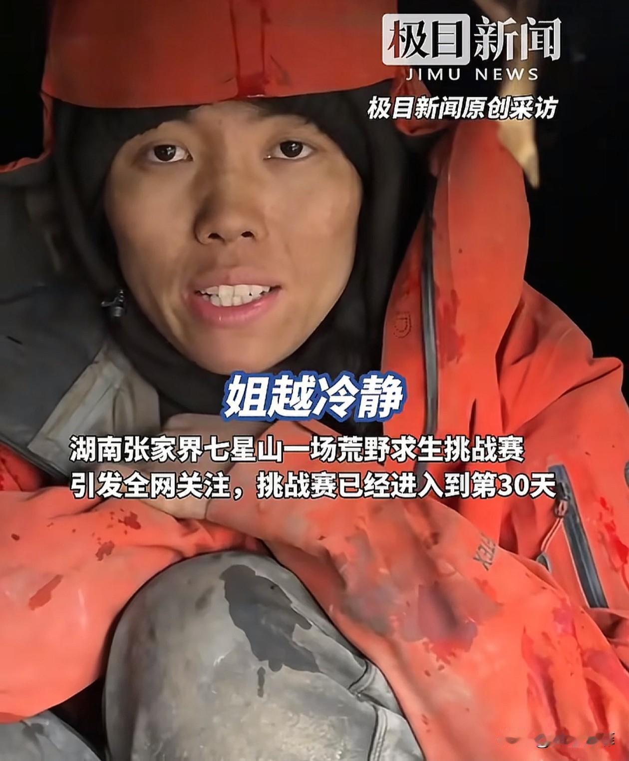 荒野求生大赛进行到第30天,最初的100名参赛选手只剩17名,女选手只剩唯一人,奖金又加20万,进入决赛的10人,每个人额外奖励2万。 湖南,现在是半决赛,唯一的女选手是云南95后“冷美人”,30天瘦了十多斤,天天靠野果和野菜填肚子,渴了连浑水都喝,最想吃的就是肉,不过美甲还一直留着,特别拼。 还有之前的夺冠热门,河南的退役特种兵,也因为缺盐缺到脚麻刺痛,30天瘦了28斤,最后还是退赛了。 剩下的选手里也有很自信的,贵州的“苗王”,直言自己百分百能进决赛,还想在山里过年。 之后的决赛会更严格,不能组队,也不能互相帮忙,还要换个新环境从零开始,坚持40天以上,坚持最久的拿冠军。 冠军的奖金本来就有20万,景区董事长又加了20万,进决赛的10个人每人直接多拿2万,总奖金池有40万。 接下来他们要继续坚持,直到只剩10人晋级决赛,才有机会能争取那笔大奖,每多坚持一天都是对体力和心态的双重考验。 挑战精神值得认可,选手的智慧和坚持也很打动人,但是要守住安全底线,选手懂进退是对的。