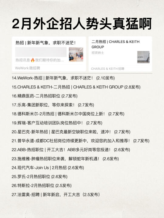 年后找工作的快去冲一波外企,年后外企放hc的速度也太快了,图上满满两页全是复工这几天在招人的外企