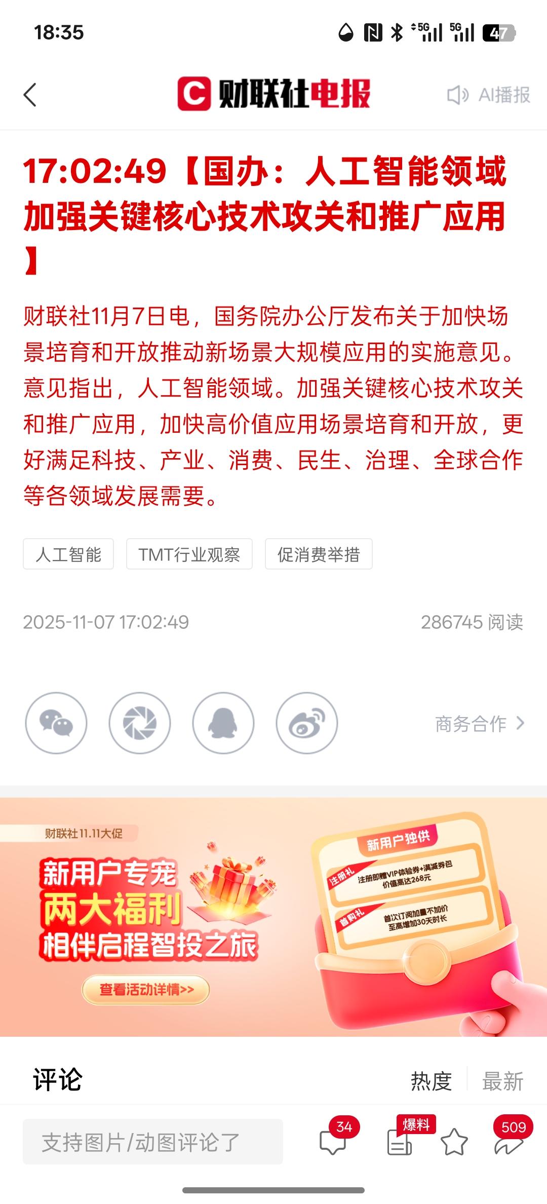 利好消息。下周相关板块会上涨,国办:推动大数据、物联网、脑机接口等新一代信息技术及医疗机器人等智能设备集成应用。那今天收盘过后,各项利好消息还是比较多的!关于脑机接口,包括物联网以及医疗机器人等智能设备集成应用的发展,都是未来主要发展的产业。脑机接口主要还是在医疗方面比较实用,未来这个发展领域有无限的想象空间,就像神经元一样的发展方向。科幻电影里面演的那样人脑植入芯片,人脑控制,智能设备,甚至未来可以连接人形机器人这个技术的开发以及未来发展有非常巨大的潜力,毕竟我们在发展智慧城市,智能化可以网络物理设备的连接,可能就会使用到脑机接口,脑机接口这个技术也是一个比较有颠覆性的科技发展技术!AI人工智能的发展,就是一次科技革命。