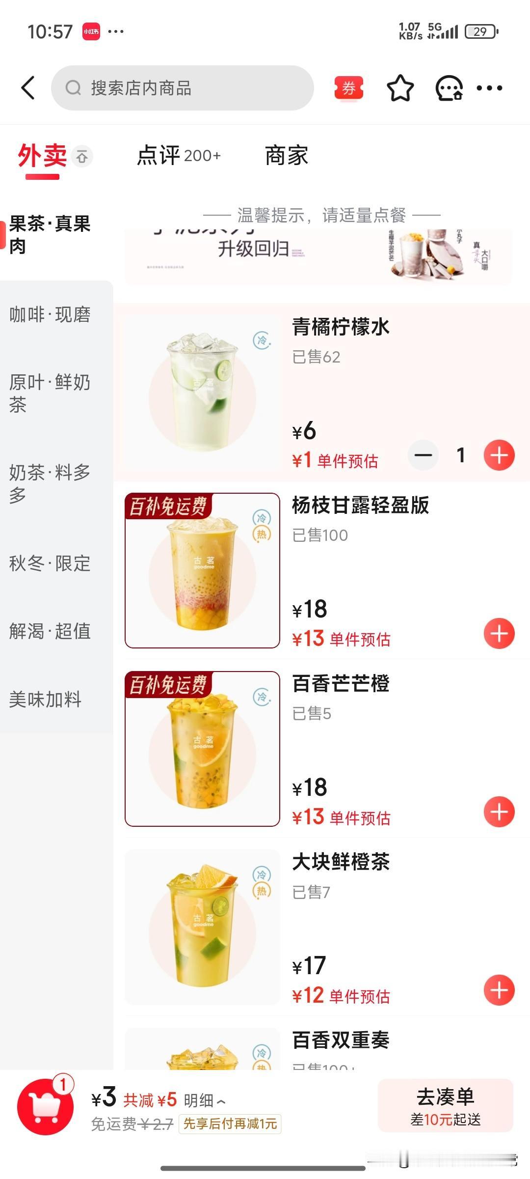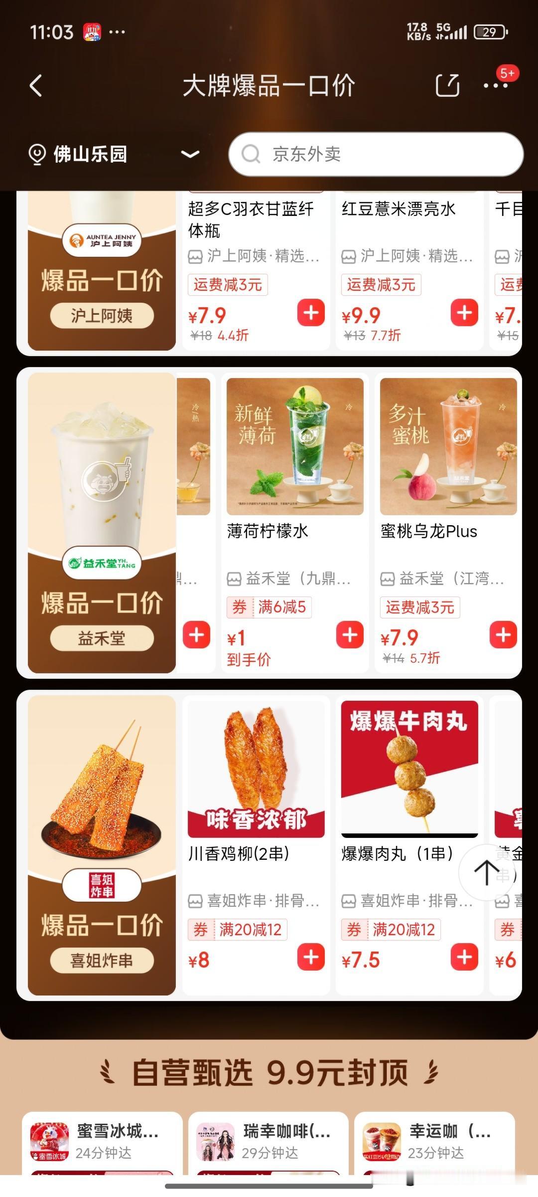 京东外卖这波羊毛,我真的不敢薅了… 佛山的朋友快睁大眼睛!京东外卖这价格是疯了吧? 古茗青橘柠檬水券后1块钱,连打包费都包了;益禾堂薄荷柠檬水更狠,算上运费才2块7?塔斯汀鸡翅9块9、瑞幸咖啡8块9…这价格比便利店矿泉水还便宜! 但我点到一半手都抖了——这羊毛是不是太离谱?商家不亏吗?上次点9块9的炸鸡,拿到手只有巴掌大;这次1块钱的柠檬茶,会不会是“迷你杯”? 更慌的是:这种低价单,骑手愿意送吗?会不会等1小时才拿到一杯“兑水版”? 现在满屏都是“1元购”,评论区全在晒单,但我真的不敢下单了——你们说,这便宜到底是“捡漏”还是“坑”?