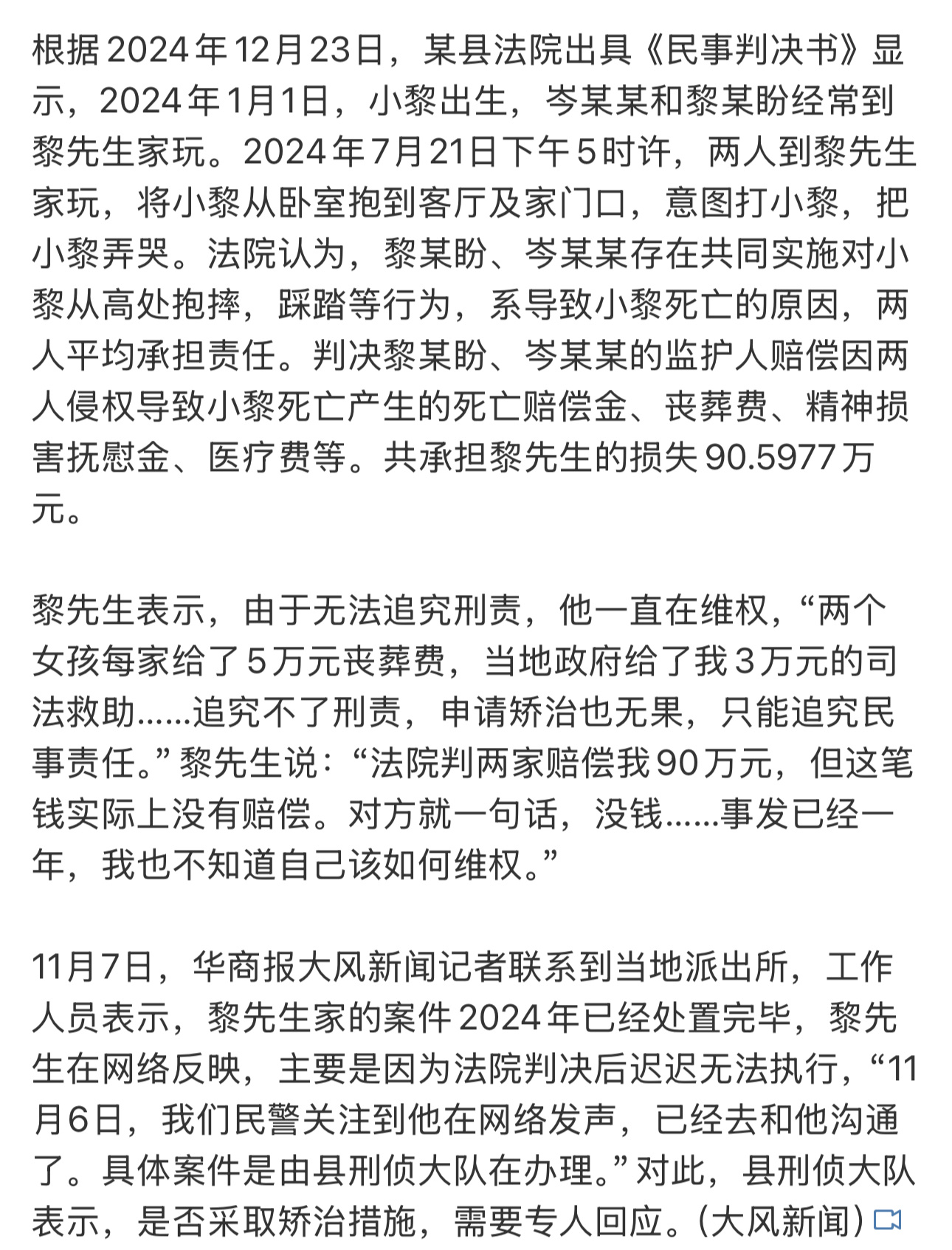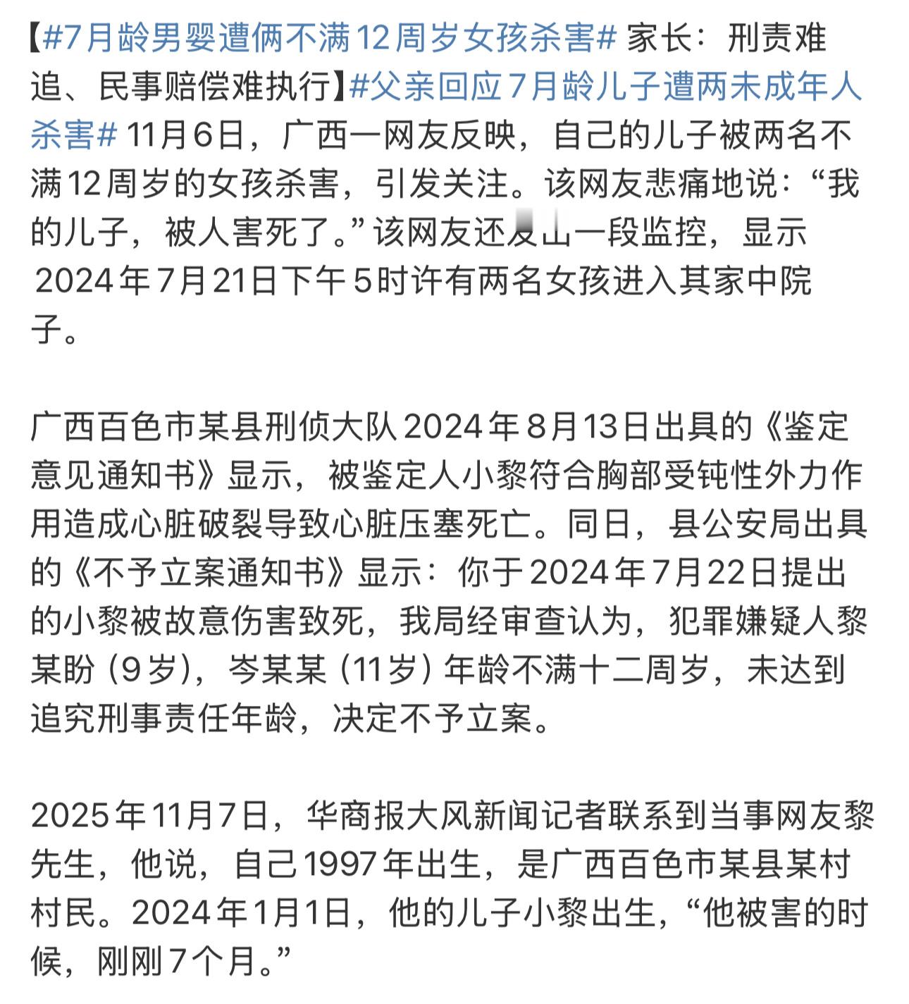 7月龄男婴遭俩不满12周岁女孩杀害热点观点
