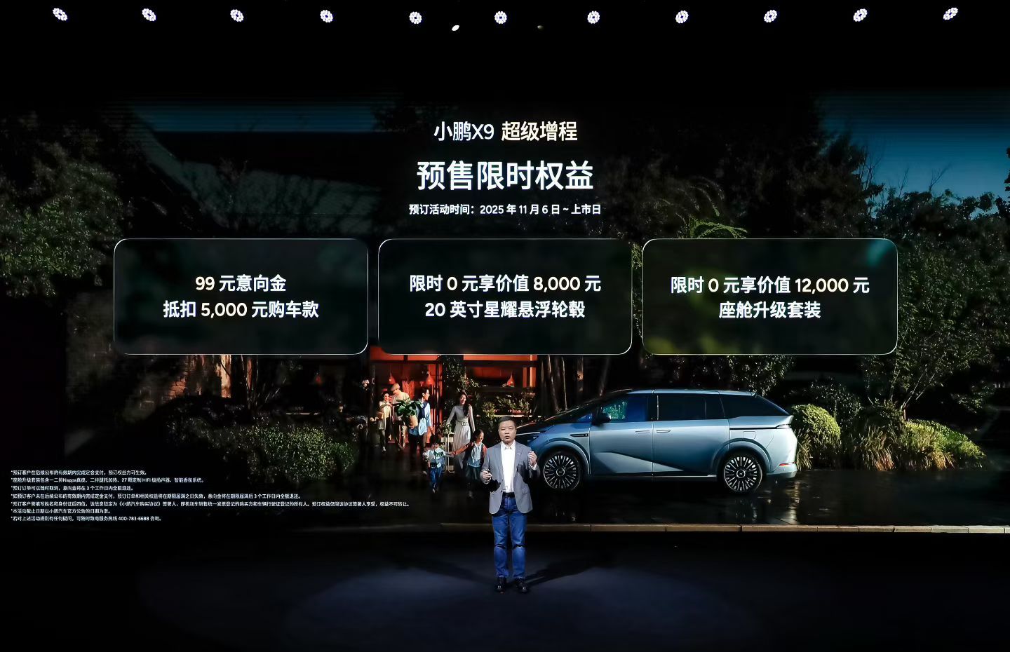 小鹏X9“超级增程”版本亮相并开启预售,其中1602 Max版35万元起,1602 Ultra版37万元起。