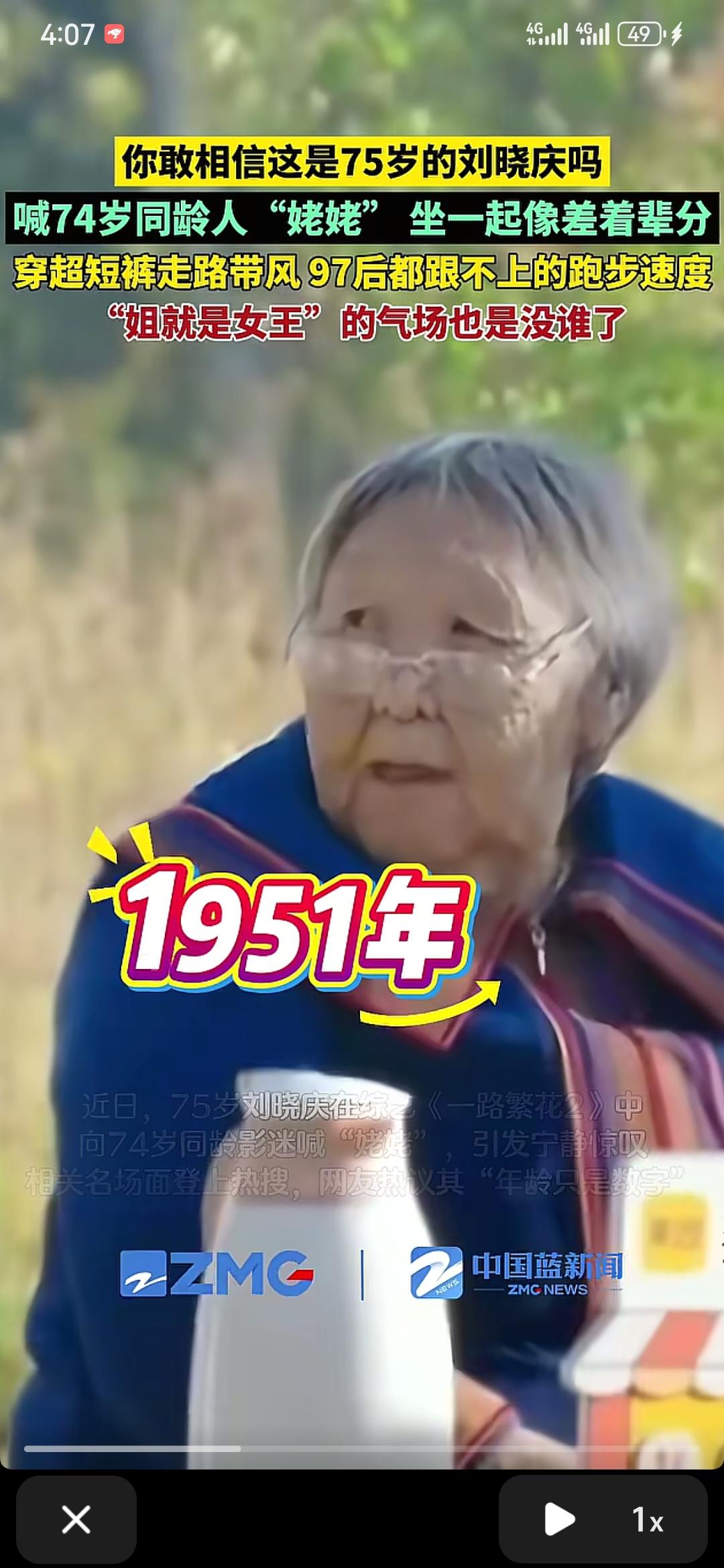 刘晓庆这样说话 是不是有点太过分了 近日,在节目《一路繁花2》中呢,刘晓庆遇见了一位老奶奶,已经是74岁高龄了 惊讶的是,刘晓庆随后问老奶奶是几几年的?老奶奶回答说是1951年的,而刘晓庆呢,她是1950年的 按道理来说呢,刘晓庆应该喊老奶奶妹妹,却不料直接喊了一句“姥姥”,这是因为老奶奶看着比自己老吗? 一个50年,一个51年,完全看不出来,分明就是一个小姑娘和老奶奶 大家觉得呢?