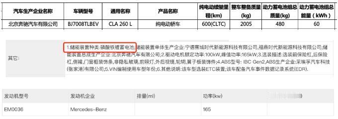 日前,北京奔驰CLA EV新车型续航信息在工信部减免车辆购置税的新能源汽车车型目录(第二十三批)中现身。 具体来看,CLA 260 L搭载容量为60千瓦时的电池组,CLTC工况续航里程为600公里,相比在售奔驰CLA EV电池容量降低29千瓦时、CLTC工况续航里程同步减少266公里。 这款车后续很有可能以奔驰CLA EV全新入门版车型身份推向市场,定价也有望比在售车型有所下探。 作为参考,北京奔驰CLA EV在11月5日宣布上市,均为“CLA 300 L”车型,官方指导价为24.9万元起。 根据最新曝光信息,奔驰CLA EV新车款型名为“CLA 260 L”,配备容量为60千瓦时的电池组,CLTC工况续航里程为600公里。 结合此前曝光的申报信息来看,该车电池类型为磷酸铁锂,整备质量为2005公斤,相比在售配备三元锂电池的“CLA 300 L”整备质量降低15公斤。 此外,奔驰CLA 260 L搭载低功率电机,最大功率165千瓦,相比在售CLA 300 L最大功率降低35千瓦。 点个关注吧!汽节车社,车圈热点资讯每日一扫清!【来自懂车帝车友圈】