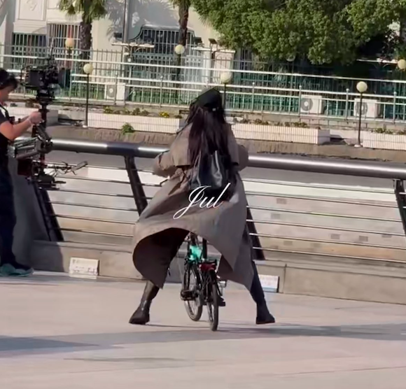 一个女生的腿怎么可以长到这种程度?有网友拍到迪丽热巴拍戏现场骑车的视频画面,骑着共享单车的她看起来英姿飒爽,骑车到站的那一刻都不用手刹,直接伸出双腿来刹车,长发跟风衣一同在风中飘逸,真的太美了。