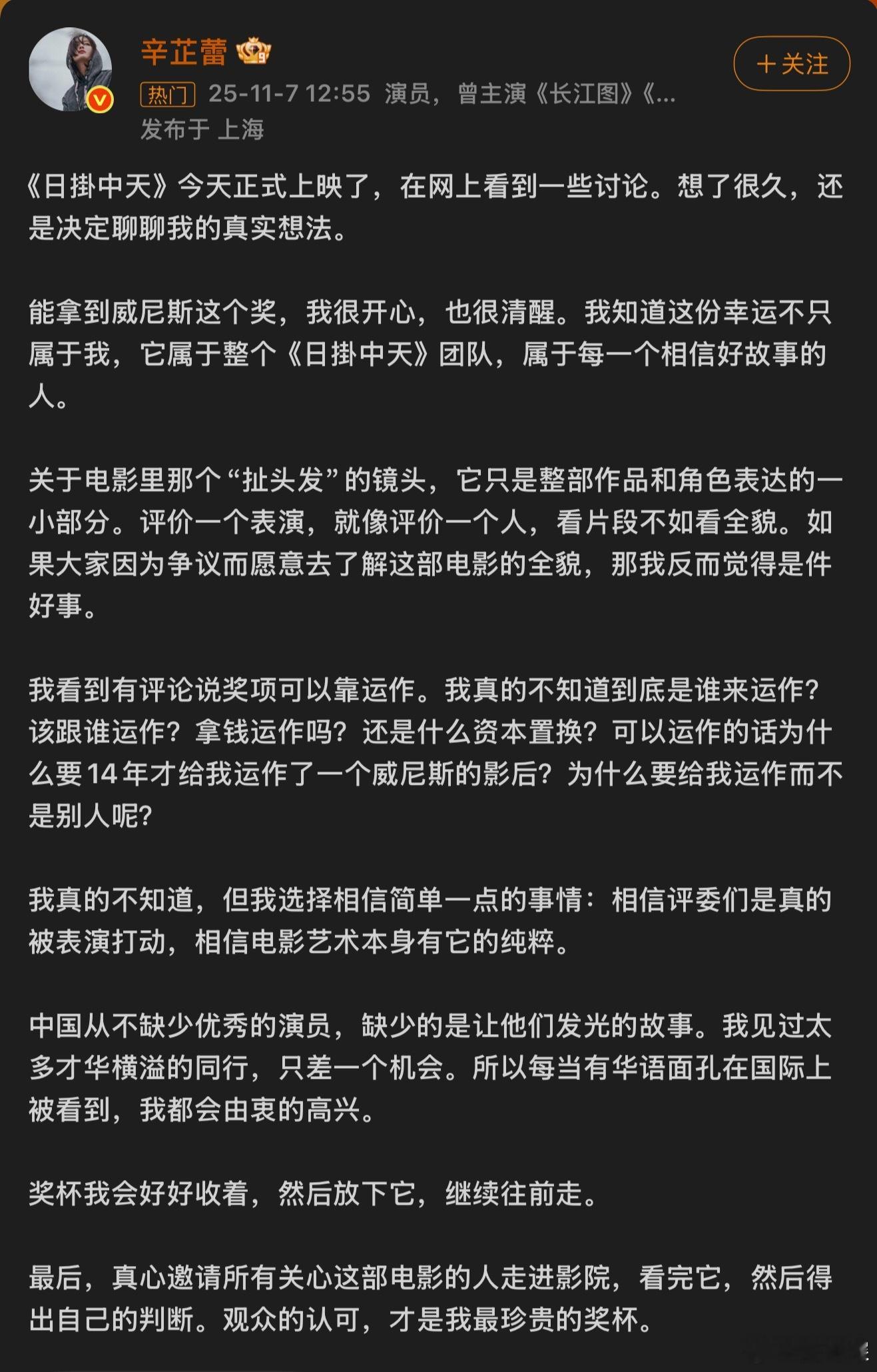 力挺辛芷蕾回应威尼斯获奖争议!郝蕾真的有点“飘”了!郝蕾演技不错,但出道近三