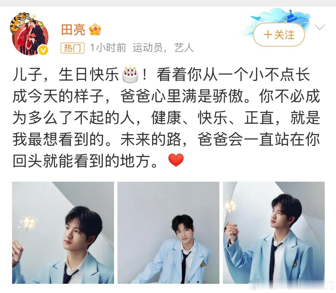晒14岁儿子生日照也太惊喜了!亮仔越长越帅气,眉眼间全是爸爸的影子,简直是田亮的“复制粘贴版”[哇] 挺拔模样自带少年感,又萌又飒~