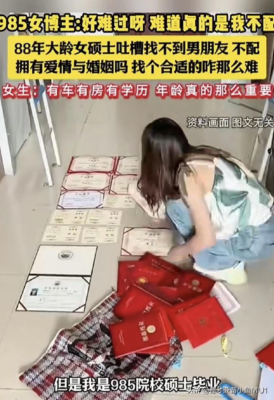 985女博士发视频吐槽找不到男友,难道就不配拥有爱情与婚姻了吗? 女子发视频表示自己生于1988年,至今未婚且没有男友。她毕业于985院校,是硕士学历,有房有车。她称自己并非供所有男性挑选的“案板上的资源”,或许是因为年纪大了,没有男性愿意花时间和耐心来认识、了解她,与她谈恋爱。最多就是经朋友介绍认识个陌生人,聊上一段时间对方就会问一句“要不要和我结婚”。她不禁反问:自己真就看起来这么廉价,随便一问就会答应结婚吗?难道自己会一副迫不及待要跟对方结婚的模样? 首先得明白,自己是个女人。女人最大的价值本就是生育,男人最大的价值是创造力。如今的你,独自美丽就好,何必再走回头路呢?旺盛的生育价值一去不复返,房车不过是附属品。就像时令水果,当季水果和过期水果,即便把过季水果用金子包起来,它就能变新鲜了吗? 高学历高收入女生有个尴尬之处,同样高学历高收入的男生可以向下找条件不如自己的女生,而女生却一定要找比自己强的,这样一来,找到合适对象就难了。婚姻自由、恋爱自由,每个人都能自由选择。人都有优缺点,别人不选你是人家的自由,不能以“配不配拥有爱情”为由强迫别人爱你。 你都37岁还没结婚,肯定是有原因的。你所谓让人花很多时间了解你,对理性的人而言,这是件成本高、风险高、支出也高的事。 这是自由选择、双向选择的情况,你也在挑选对方。不然,让你嫁到娶不到媳妇的山区,你愿意吗?你肯定不愿意。所以你能拒绝别人,别人也能拒绝你。 你觉得自己很优秀,但在你看得上的人眼里,他觉得你不适合他,无法满足他的需求,所以不选你。 女子还是要求太高了,把你的标准降一降,换位思考下,如果以你的条件作为男人你愿意娶你自己吗,女人最大的优势是年龄。 对此大家怎么看?