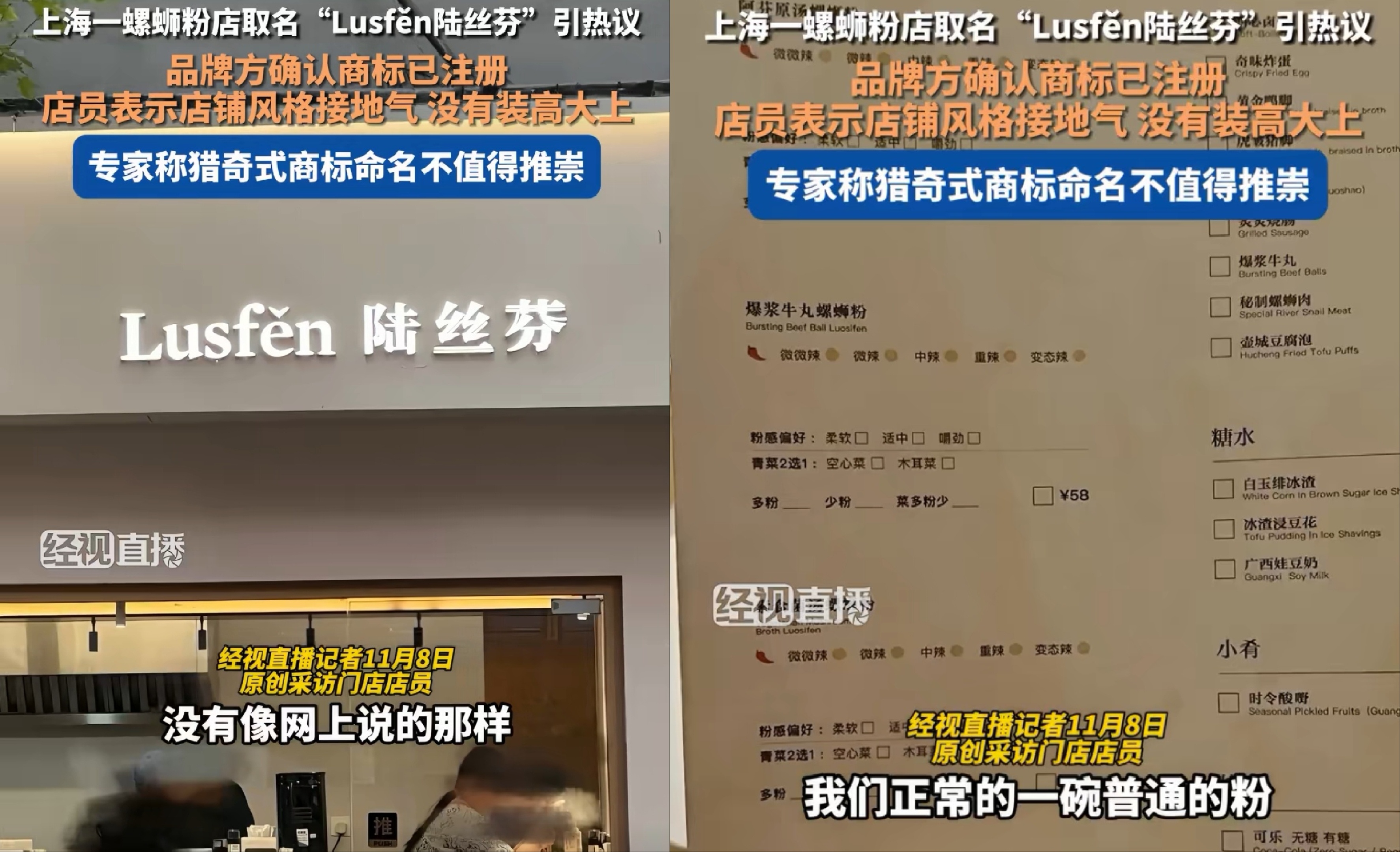 近日,上海一家螺蛳粉店名“陆丝芬”(Lusfěn),因猎奇式店名引发网络热议,品牌方称该店名已注册为商标。在我看来,如此店名能引发关注,其实已达到命名的目的,说明品牌创始人深谙营销套路,但生意是否兴隆,该店是否能长期经营,还得看餐品、服务如何。螺蛳粉店名 陆丝芬满谈营销