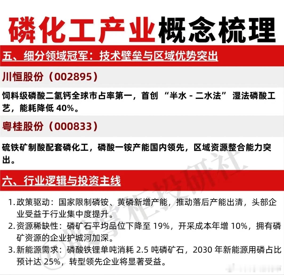 3. 新能源需求:每吨磷酸铁锂消耗约2.5吨磷矿石,预计到2030年新能源领域用磷占比将达25%,转型领先企业受益明显。