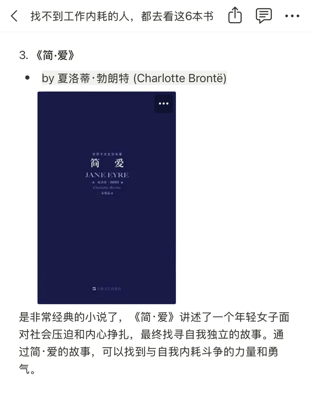 《当下的力量》 《少有人走的路》 《简·爱》 《无声告白》 《非暴力沟通》 《平凡的世界》 . ☑️图上放了简单的介绍,大家可以挑自己感兴趣的去看 . 不仅会分享真实有效的职场信息,还会不断分享成长干货,帮助大家提升自我! .