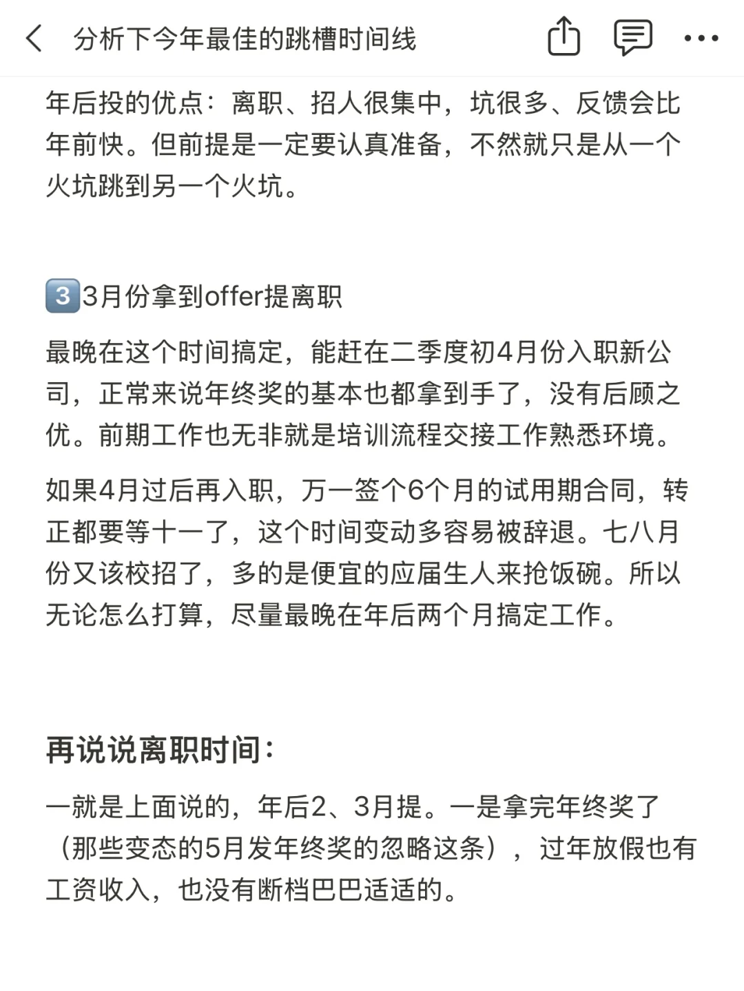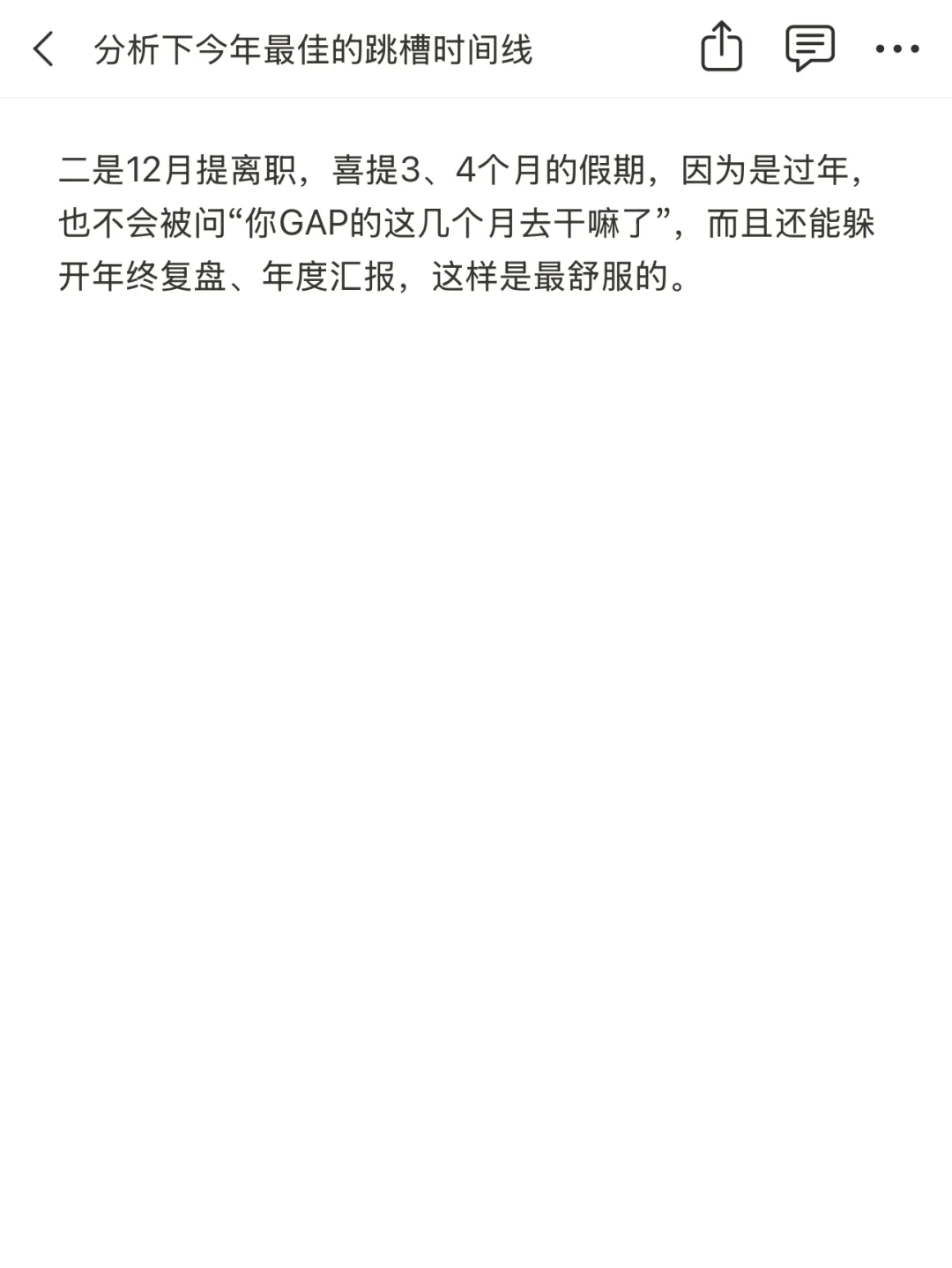 ▪️二是12月提离职,喜提3、4个月的假期,因为是过年,也不会被问“你GAP的这几个月去干嘛了”,而且还能躲开年终复盘、年度汇报,这样是最舒服的。