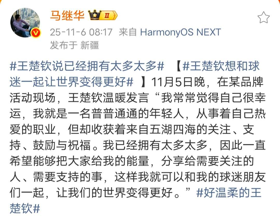 马老师发微博,顺手把王楚钦那句“让世界变好”拎了出来。 不是喊口号,是真信。 特朗普那边吵翻天,他这边笑笑,打个球的事儿,别整那么大。 人家运动员拼的是台子,不是热搜。 你刷100条热点,不如他一拍子砸出个冠军。 世界变好,不是靠嘴,是靠人一块块砖垒出来的。 马老师没想当导师,只是刚好看见了光,顺手点了个赞。
