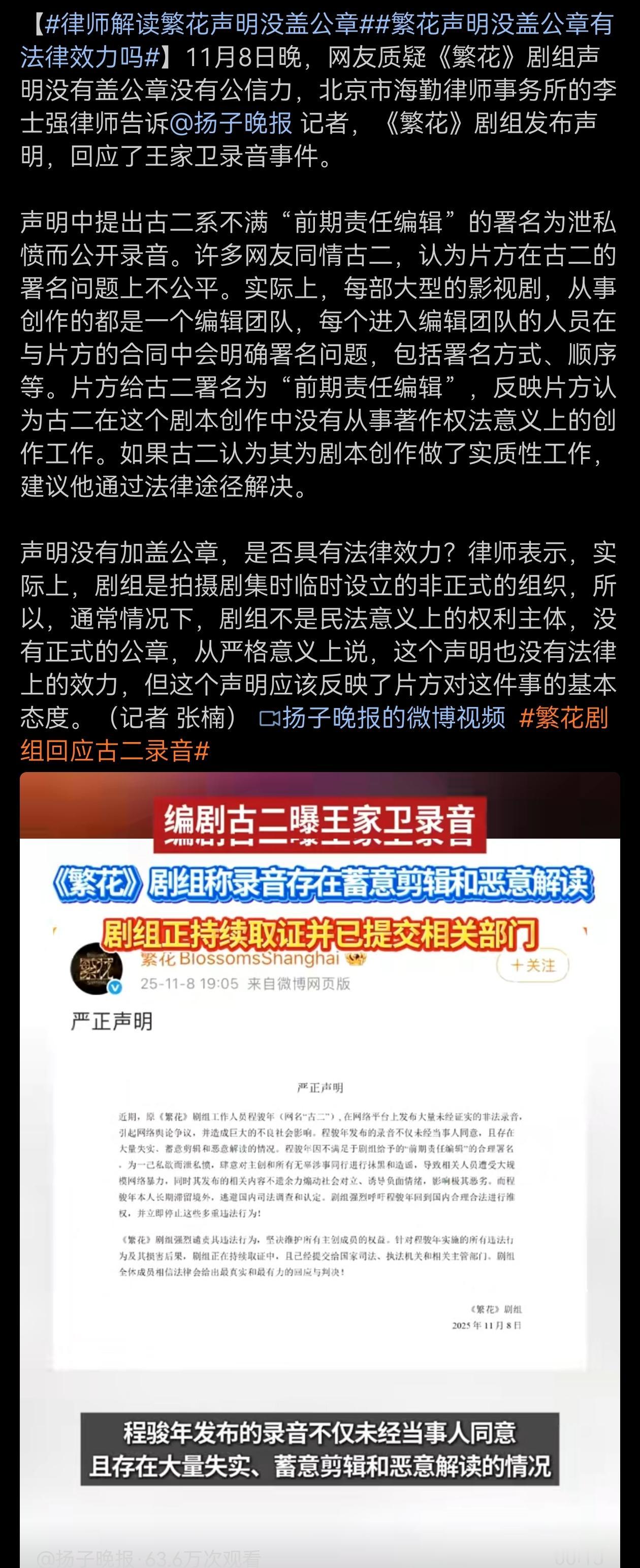 律师解读,《繁花》剧组声明没有公章,具备法律效力吗?
