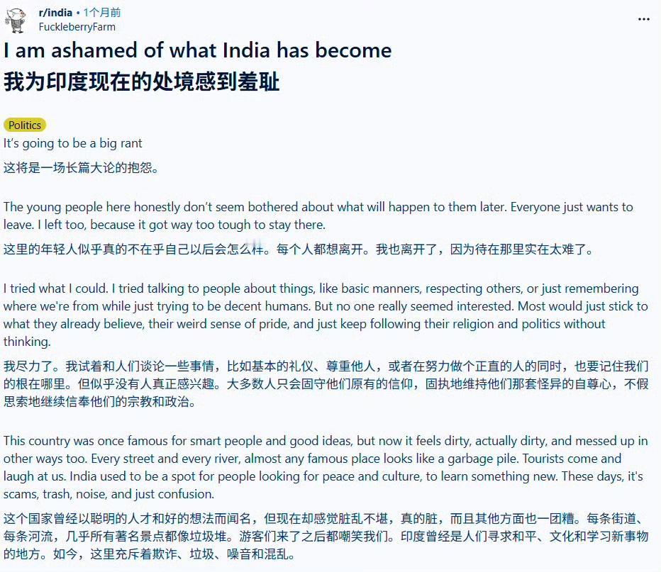 看来如今印度挺恼火的!关于印度,这位网友分析得挺有思意。