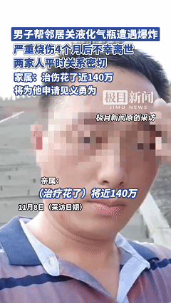 贵州男子在浙江务工,帮邻居关液化气瓶遭遇爆炸离世。强制要求使用瓶装液化气的必须安装报警器,一个还不行,得安两个双重保险,再加上鼻子,三重保险才稳。 听到邻居液化气泄露就往上冲,这大概是刻在骨子里的善良。打工者在异乡抱团取暖的温度,最后竟要以这样惨烈的方式灼伤自己。全身 89% 烧烫伤的面积,在医学上已经接近致死极限。 四个月的重症监护室,医疗账单滚雪球到 140 万,耗尽了这个普通打工家庭的所有积蓄。大约欠了五六十万元外债,人没了,这个账怎么还呀。 所谓的见义勇为认定或许能给家属些许安慰,可当防护手套抵不过滚烫的阀门,究竟需要多少勇气才能选择当那个逆行者? 最近路过城乡结合部的出租屋区,总看见窗口耷拉着的煤气软管在风里晃。这座城市每天有多少类似的定时炸弹在滴答作响,又有多少个钱先生正在赶往致命现场的路上。