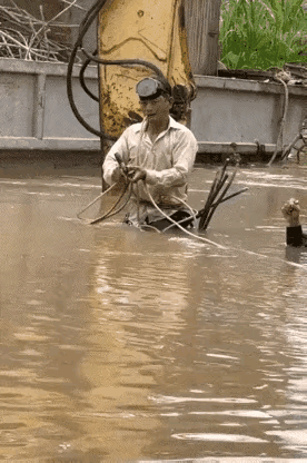 这应该是水下电焊工,能干这个活的技术工人,技术应该都是一流的,普通的工人恐怕干不了这样的活,在水下作业非常的不容易,而且也充满了风险,估计情况干这种活,报酬低不了!